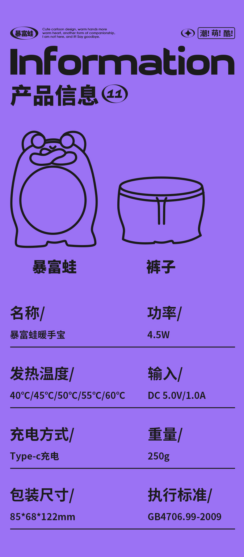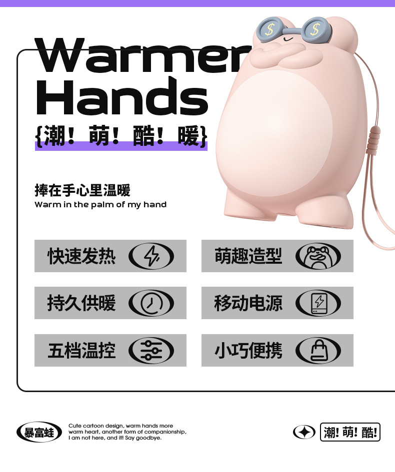 代发頤電/颐电双面发热暴富蛙暖手宝充电宝二合一便携式可爱卡通图制暖手宝 AD-0779