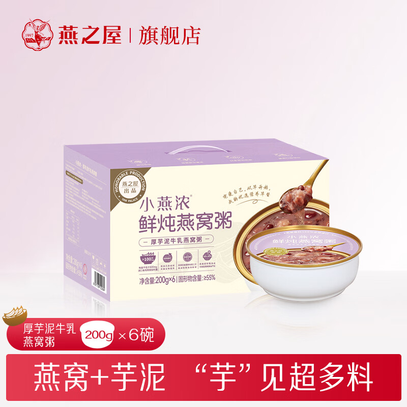 代发自营燕之屋 小燕浓 鲜炖燕窝粥 厚芋泥牛乳燕窝粥200g*6碗(JJ)
