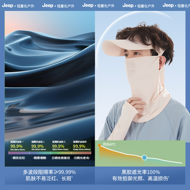 代发吉普冰丝防晒面罩男女全脸防紫外线骑行帽护颈遮脖子口罩面纱冰袖