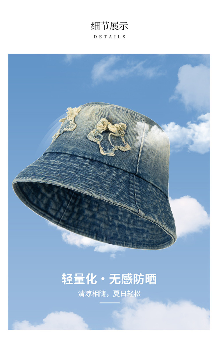 代发吉普2025新款五角星贴布渐变牛仔渔夫帽女士甜美复古街头百搭水桶P950NAD238