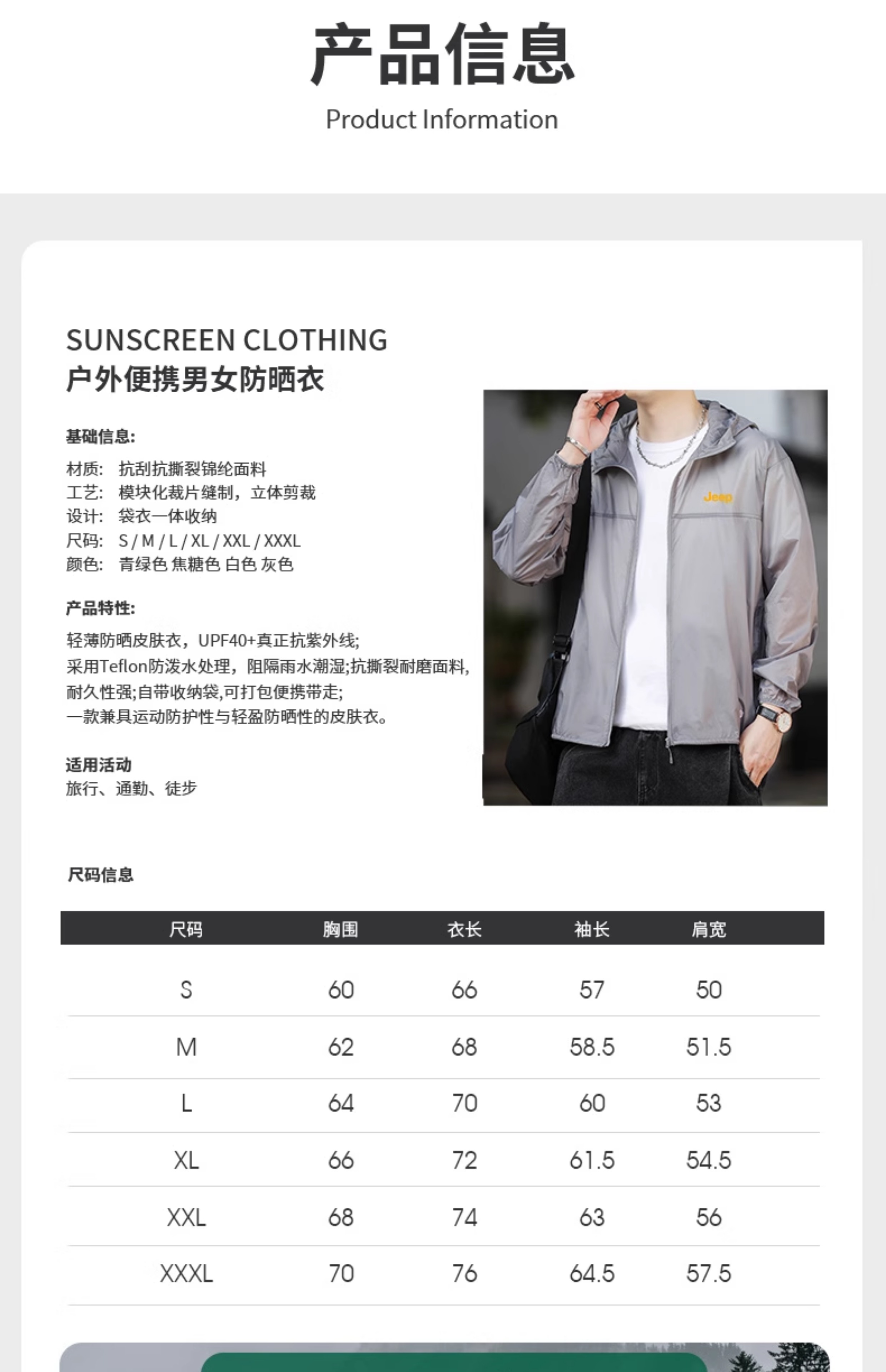 代发JEEP吉普夏季轻薄防晒衣男款防紫外线冰丝速干透气户外钓鱼外套男