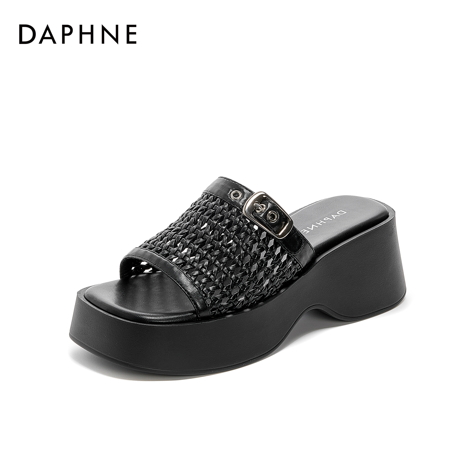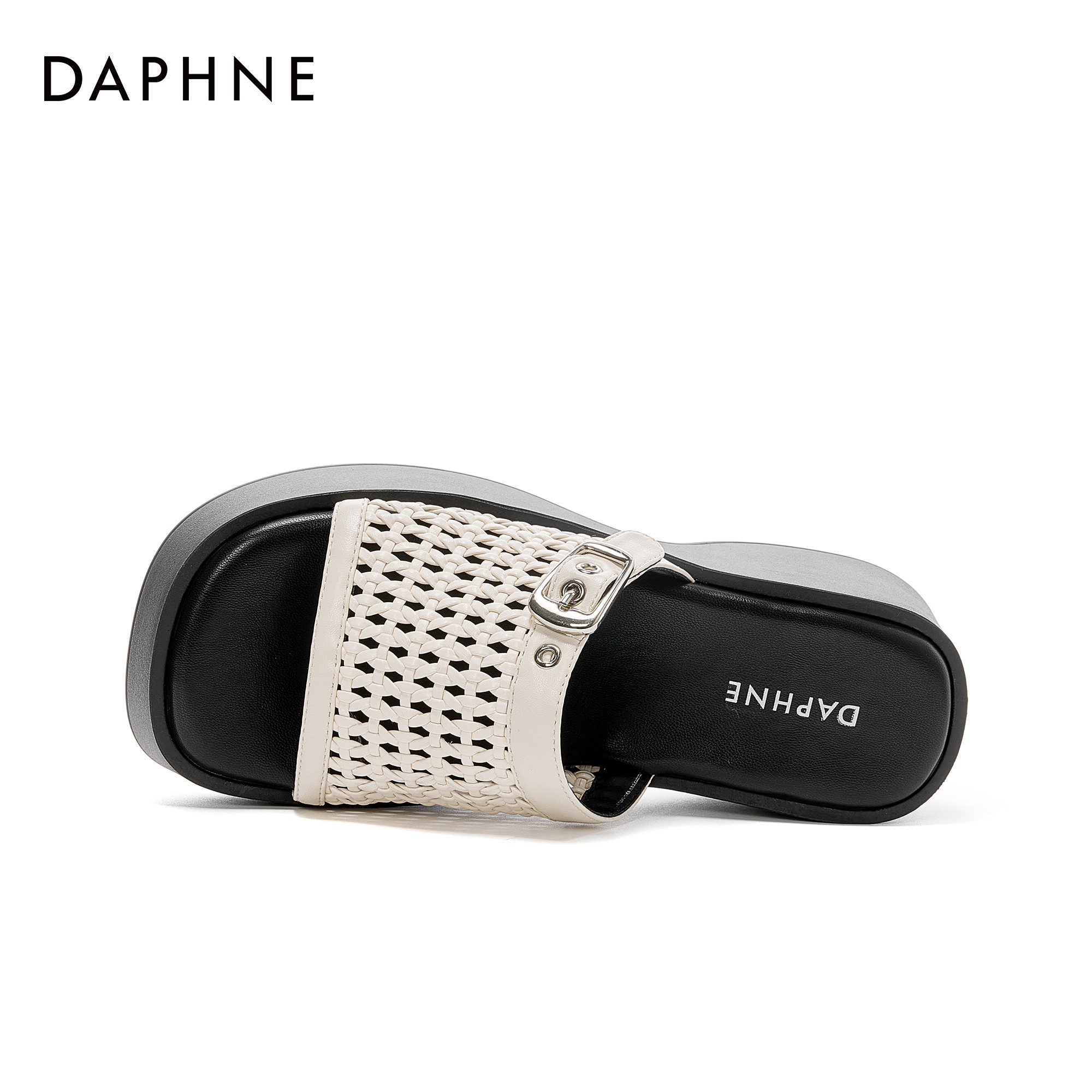 代发达芙妮厚底编织皮带扣一字拖女2025年新款休闲懒人一脚蹬沙滩拖鞋