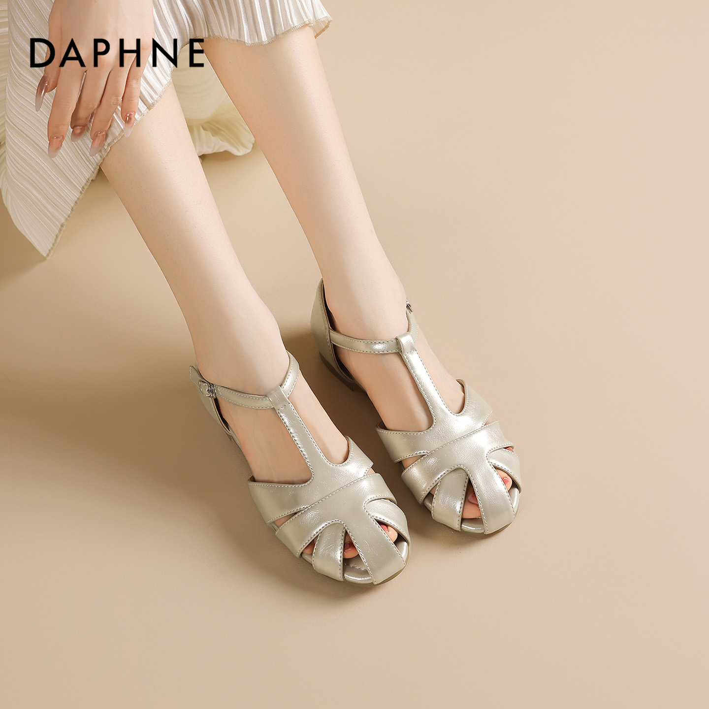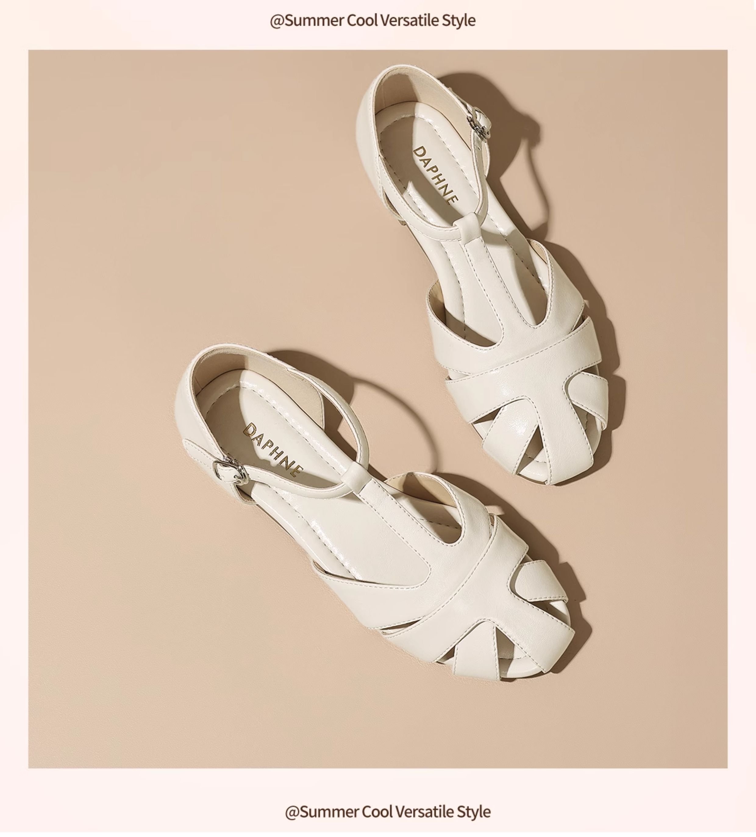 代发达芙妮法式包头凉鞋女2025新款夏季复古镂空猪笼鞋平底罗马凉鞋女