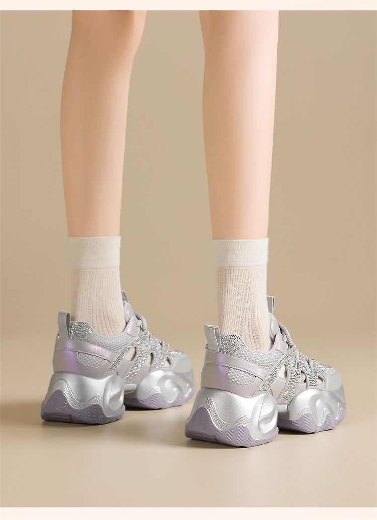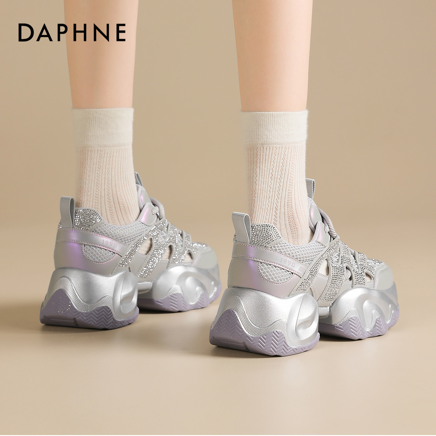 代发达芙妮网面厚底老爹鞋女2025夏季爆款镂空透气轻便增高休闲运动鞋