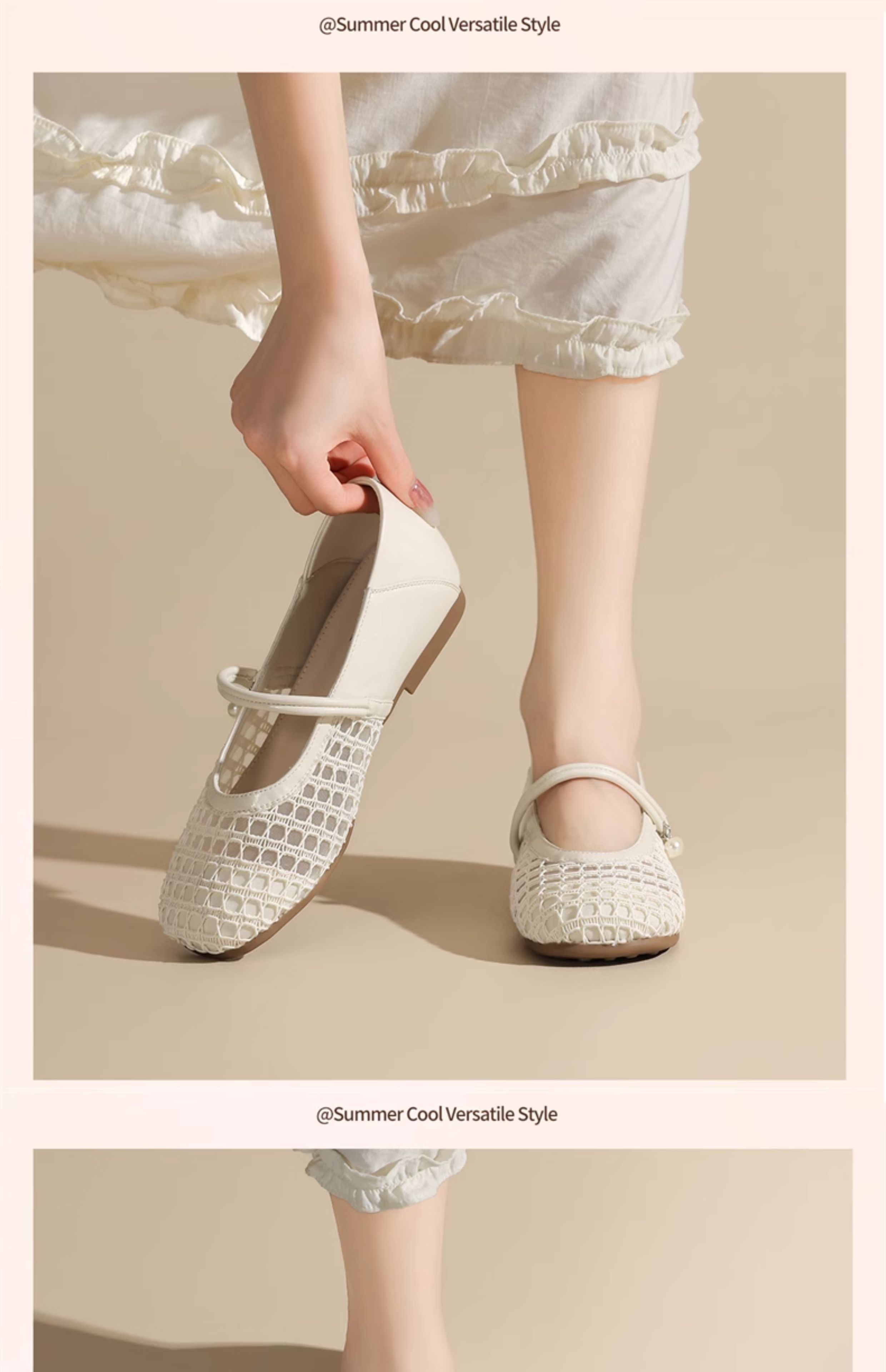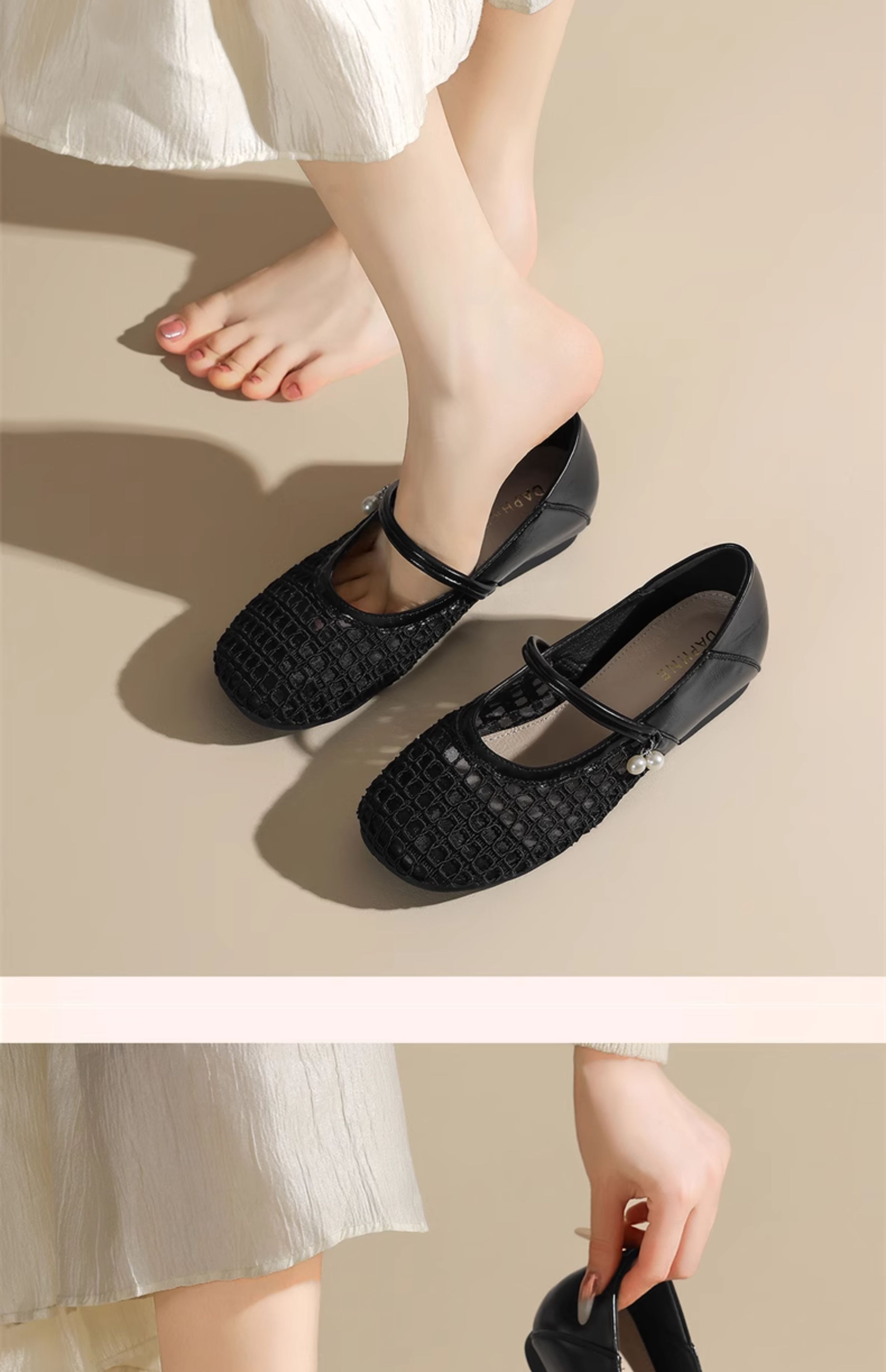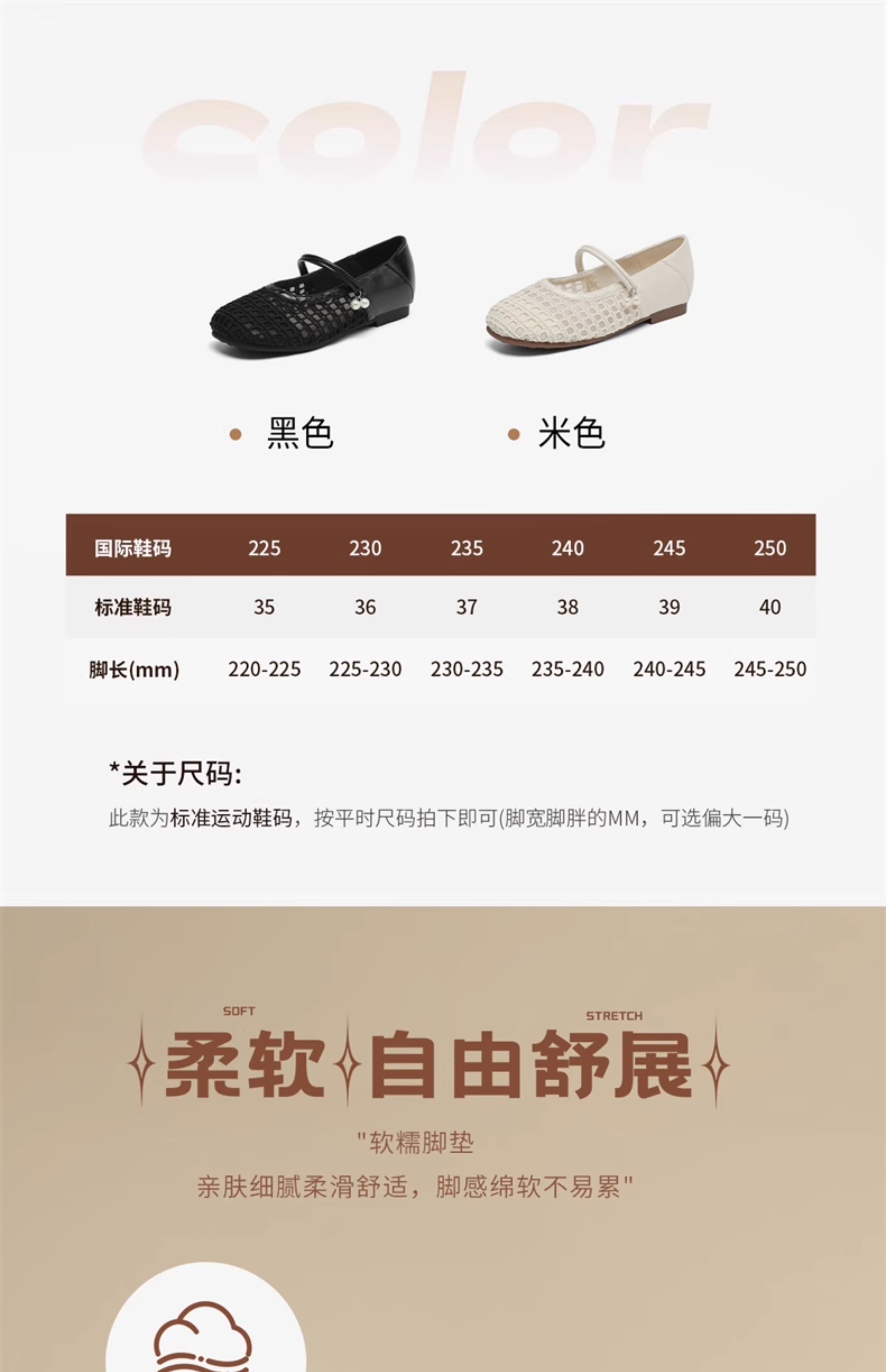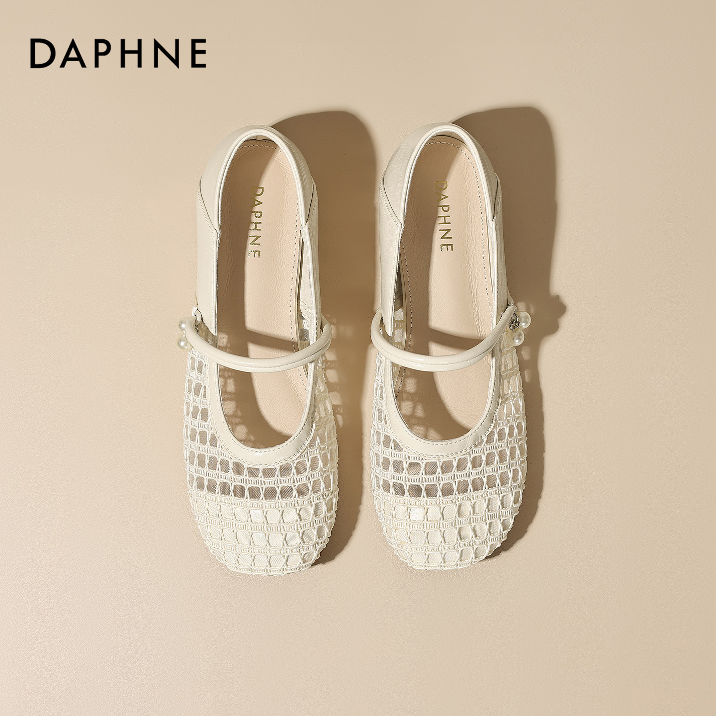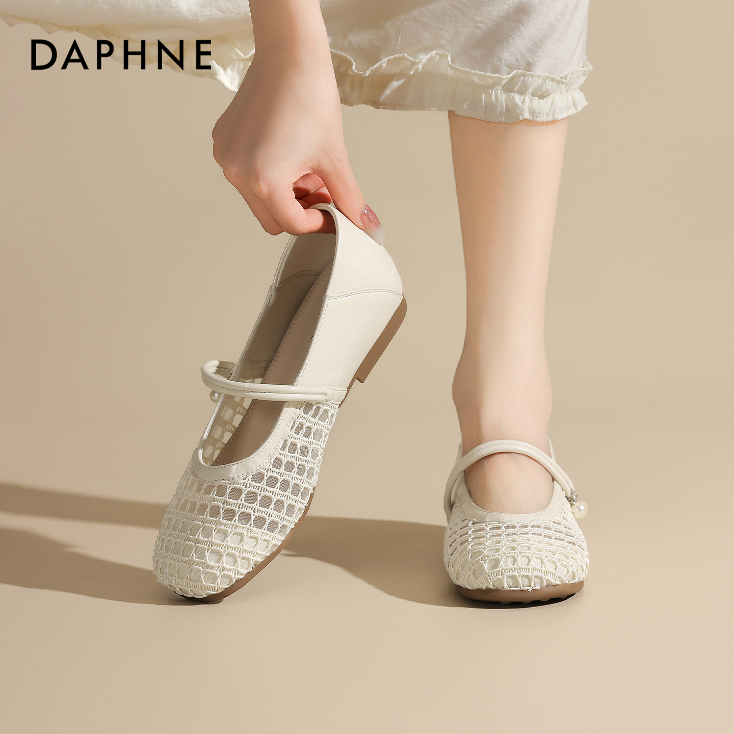 代发达芙妮法式玛丽珍凉鞋女款2025夏季新款编织镂空百搭平底浅口单鞋