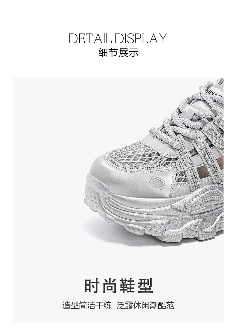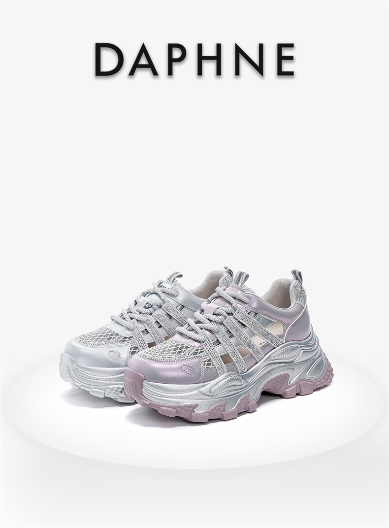 代发达芙妮厚底老爹鞋女2025新款夏季网面透气镂空休闲运动鞋增高板鞋