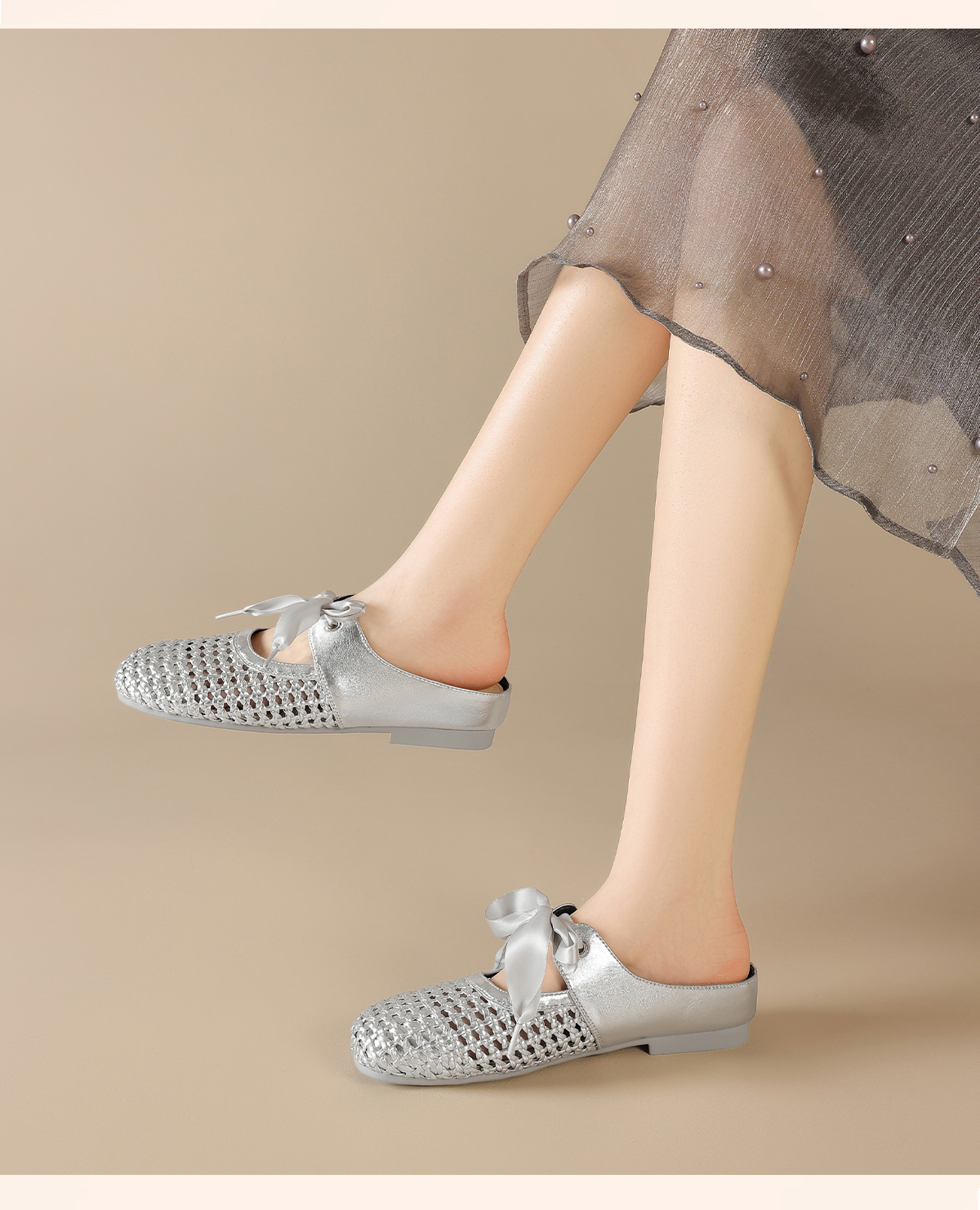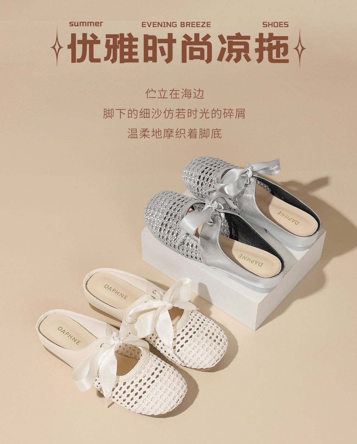 代发达芙妮编织镂空包头半拖女复古透气2025夏季新款法式气质低跟凉鞋