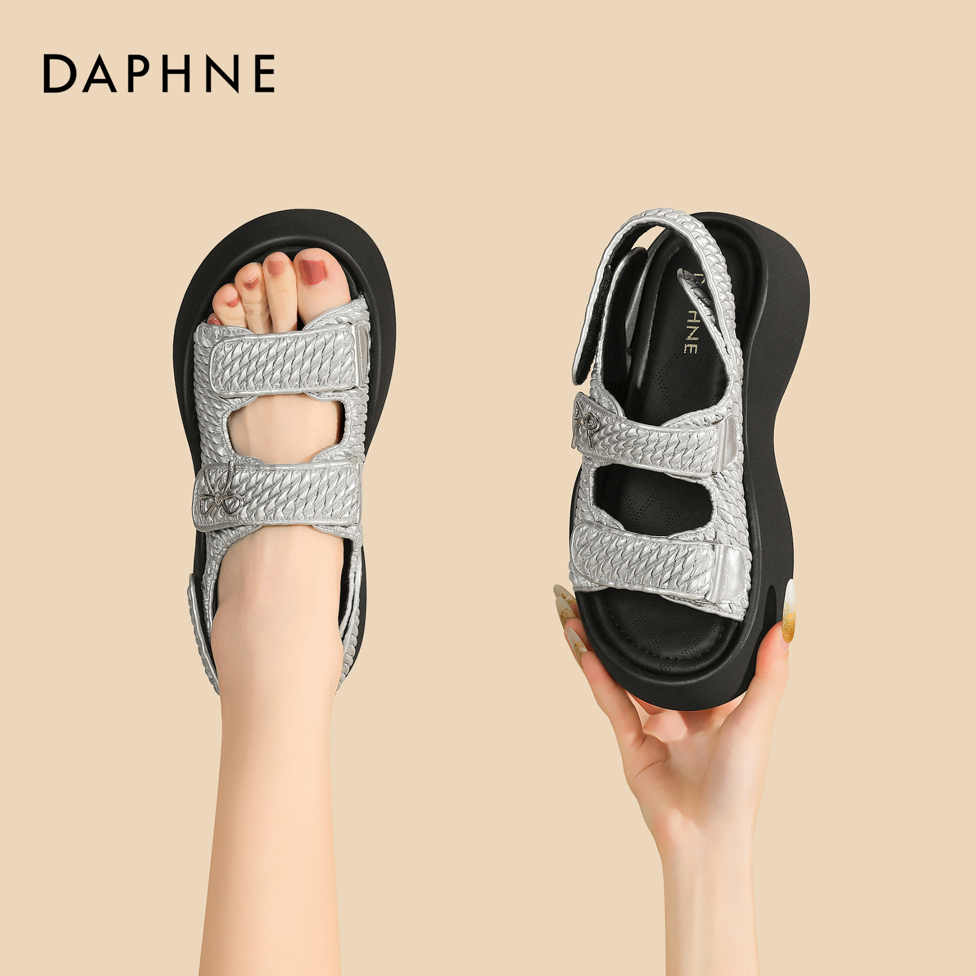 代发达芙妮厚底凉鞋女休闲增高魔术贴2025夏季新款小香风软底时尚凉鞋