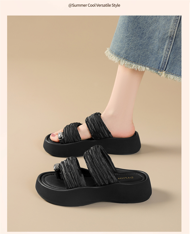 代发达芙妮高级感厚底套趾一字拖鞋女2025夏季轻便外穿踩屎感沙滩凉拖