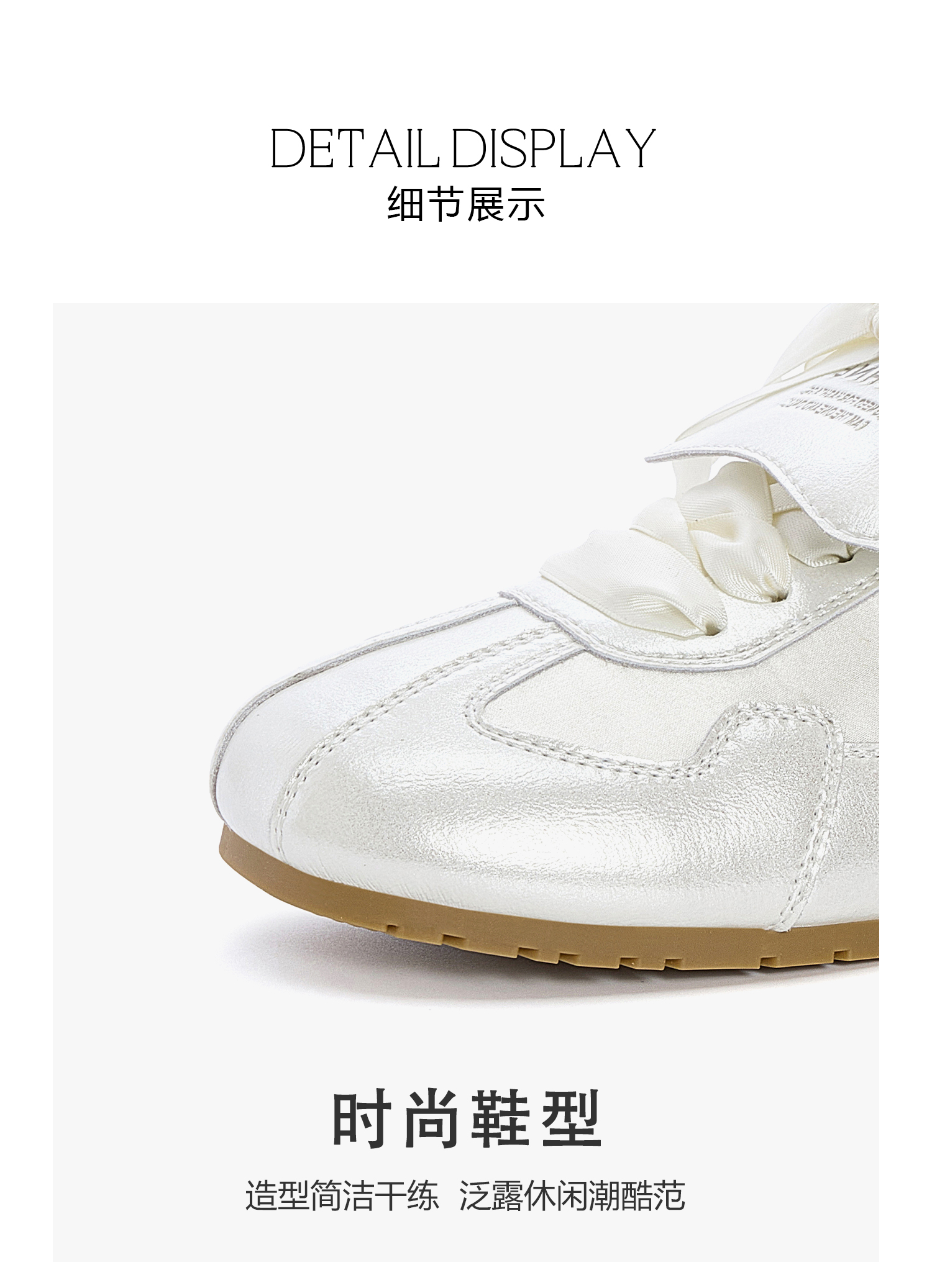 代发达芙妮银色德训鞋女款2025新款平底真皮休闲运动阿甘鞋配裙子的鞋