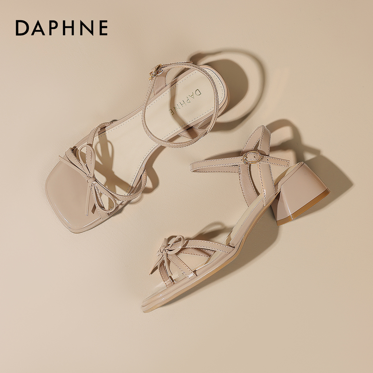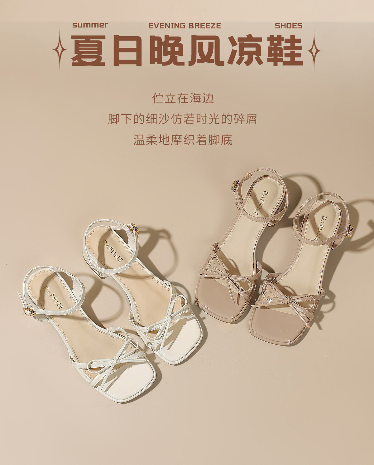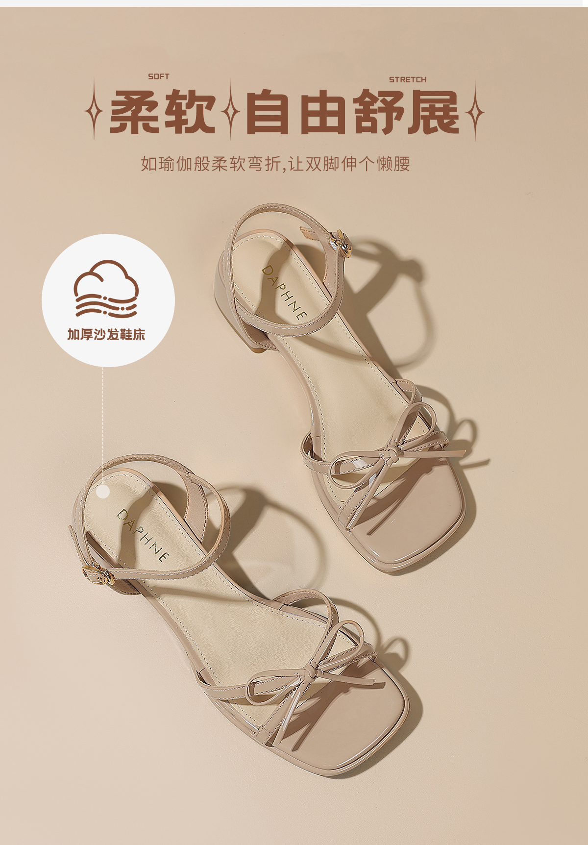 代发达芙妮绝美蝴蝶结凉鞋女粗跟气质2025夏季新款外穿时尚高级感女鞋