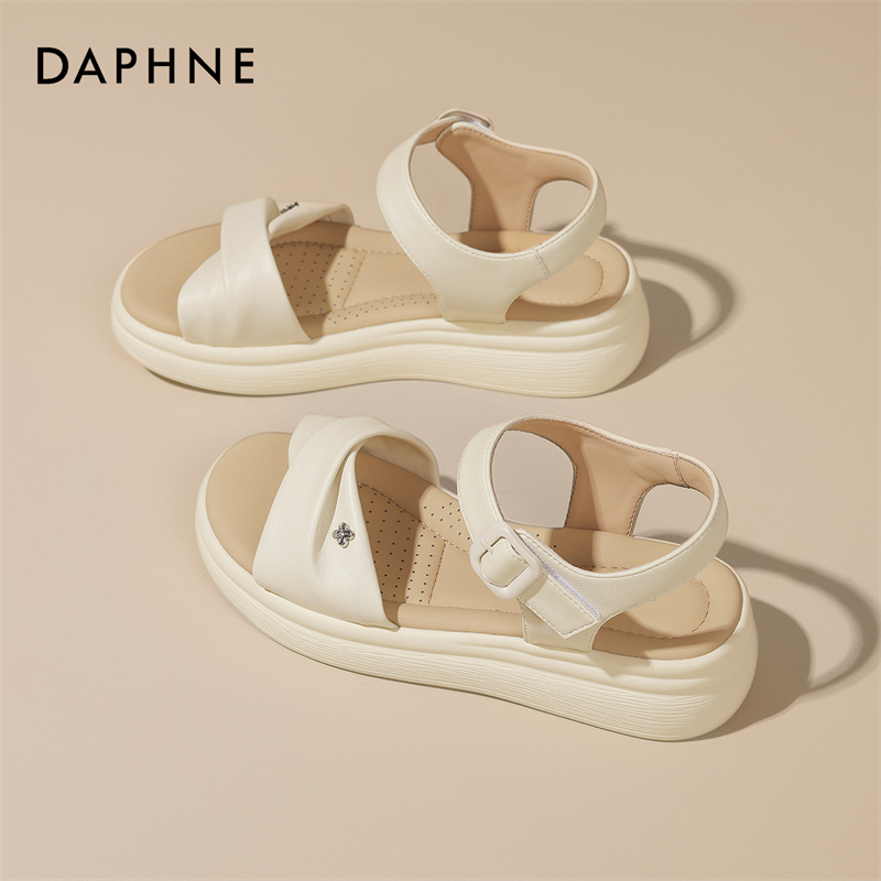 代发达芙妮踩屎感厚底休闲凉鞋女2025夏新款外穿露趾百搭沙滩鞋配裙子