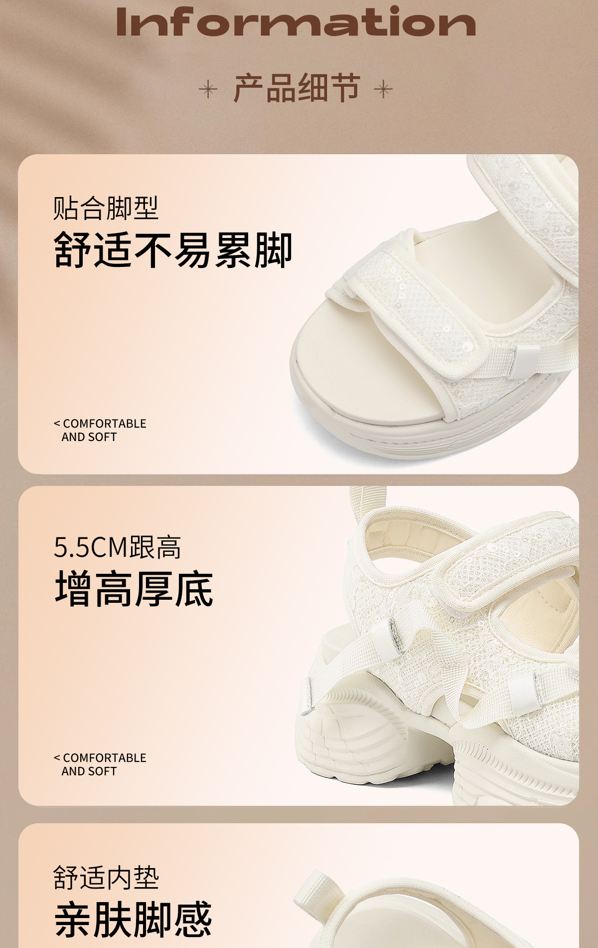 代发达芙妮云软凉鞋女魔术贴外穿增高2025夏季新款百搭休闲运动凉鞋女