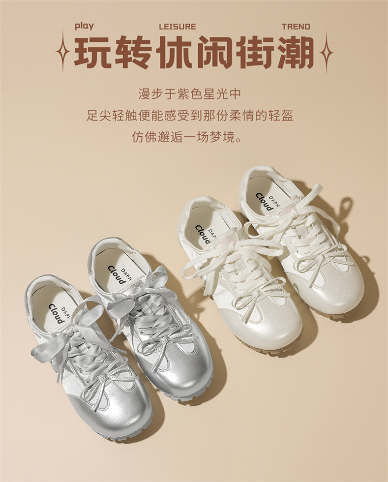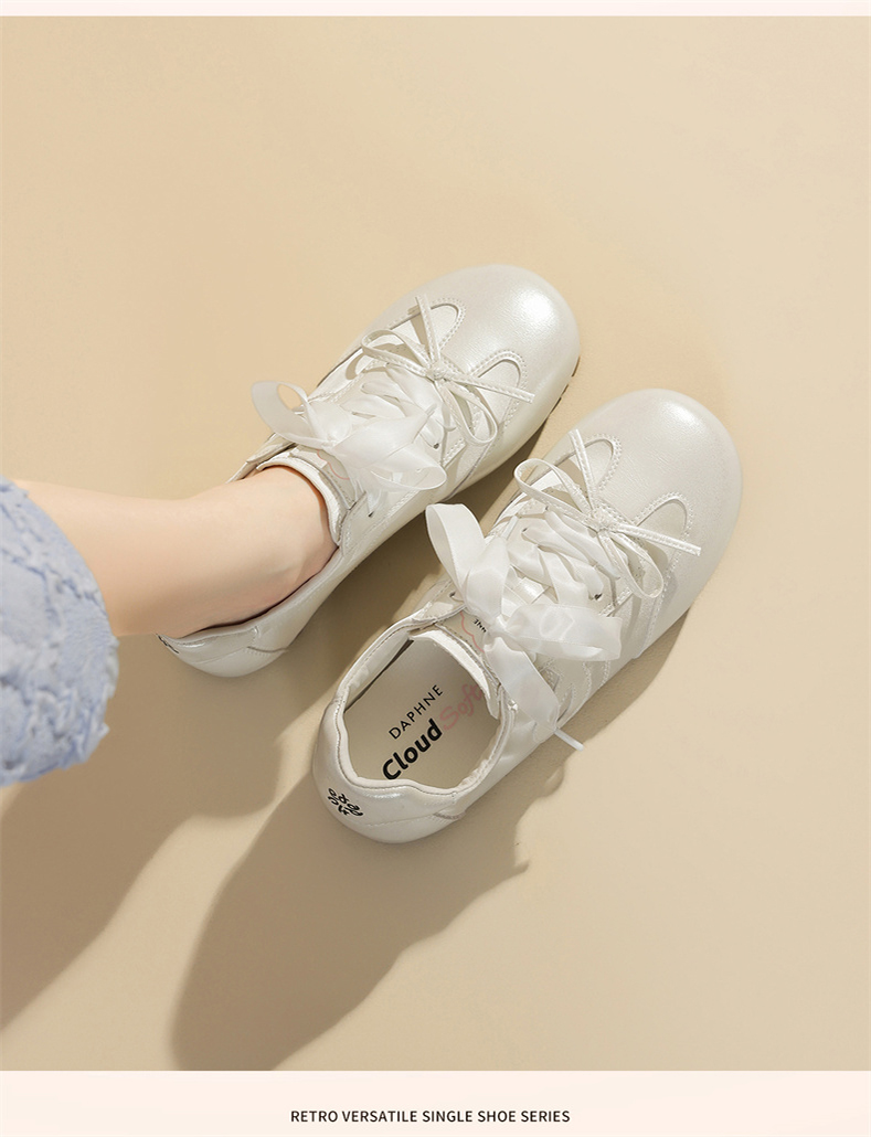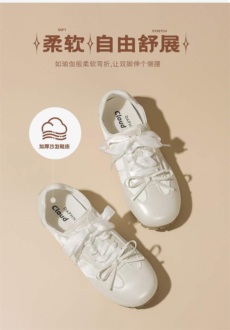 代发达芙妮2025新款夏季休闲鞋女百搭不累脚芭蕾舞鞋蝴蝶结德训鞋女鞋