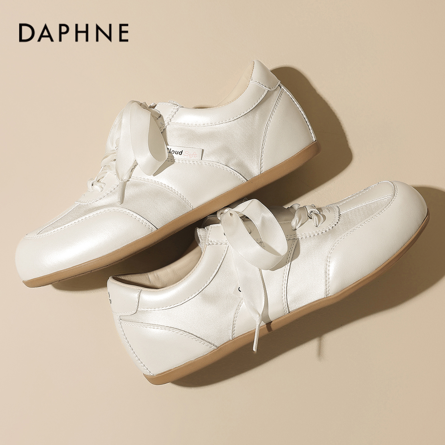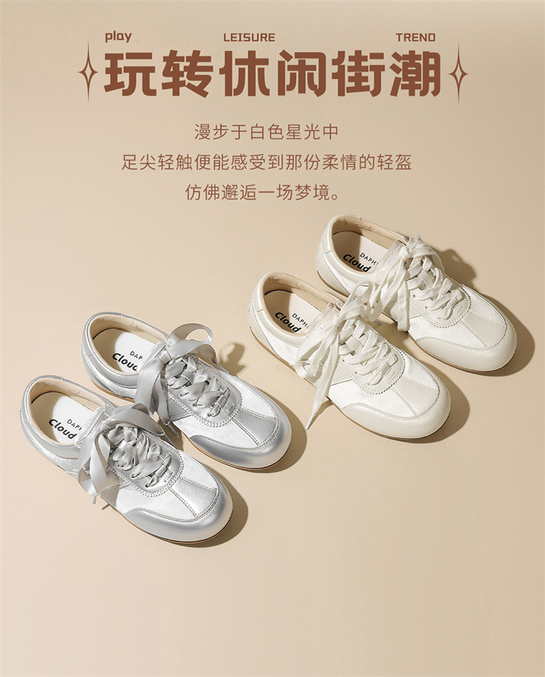 代发达芙妮2025新款夏季休闲鞋女平底银色德训鞋轻便百搭运动鞋女鞋子