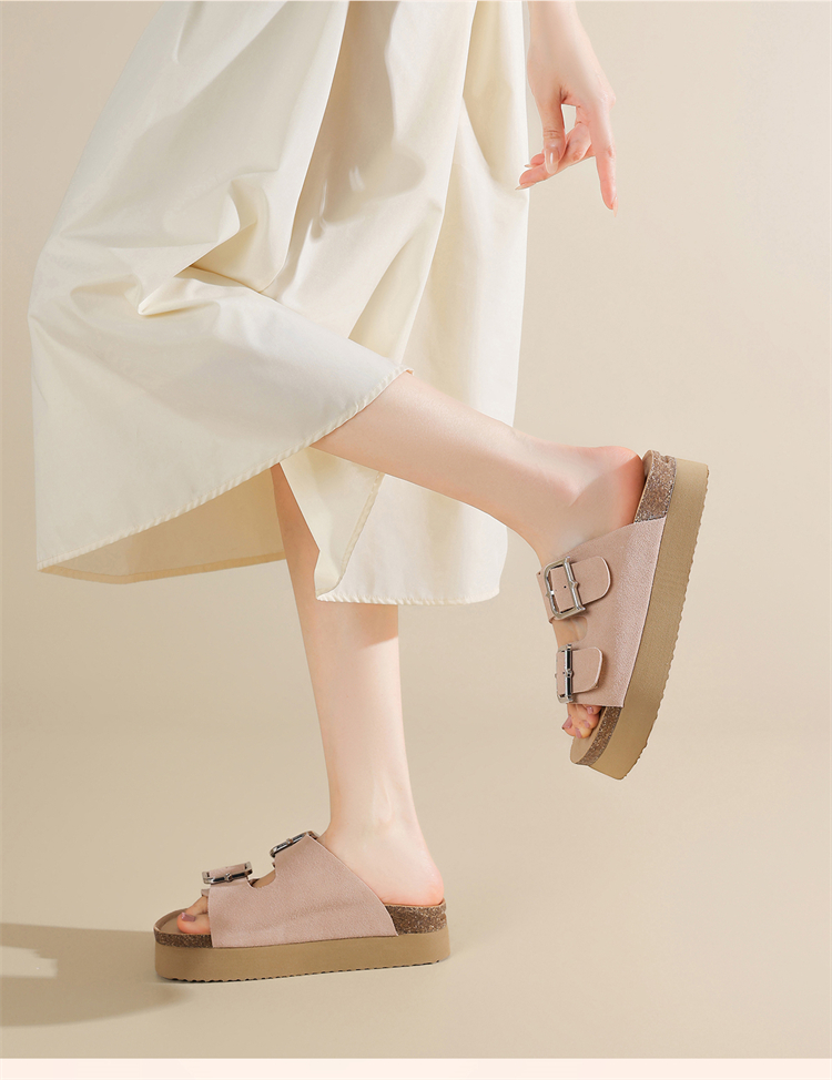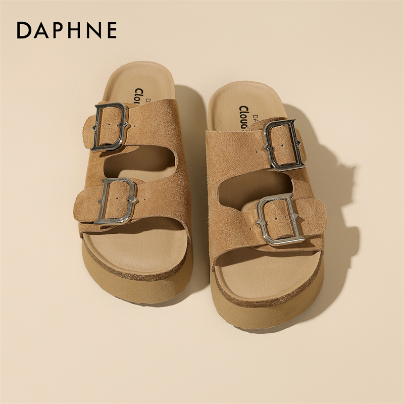 代发达芙妮厚底云软勃肯鞋女2025夏季外穿皮带扣休闲凉鞋沙滩一字拖鞋