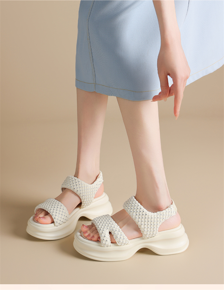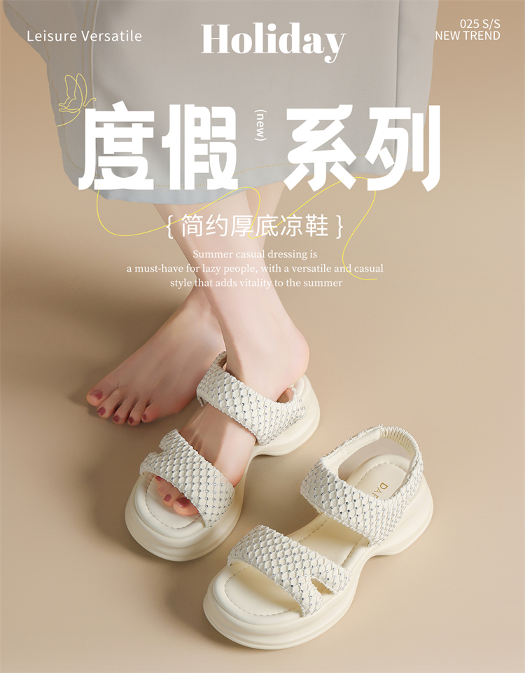 代发达芙妮白色厚底运动凉鞋女2025夏新款踩屎感增高松糕沙滩鞋配裙子