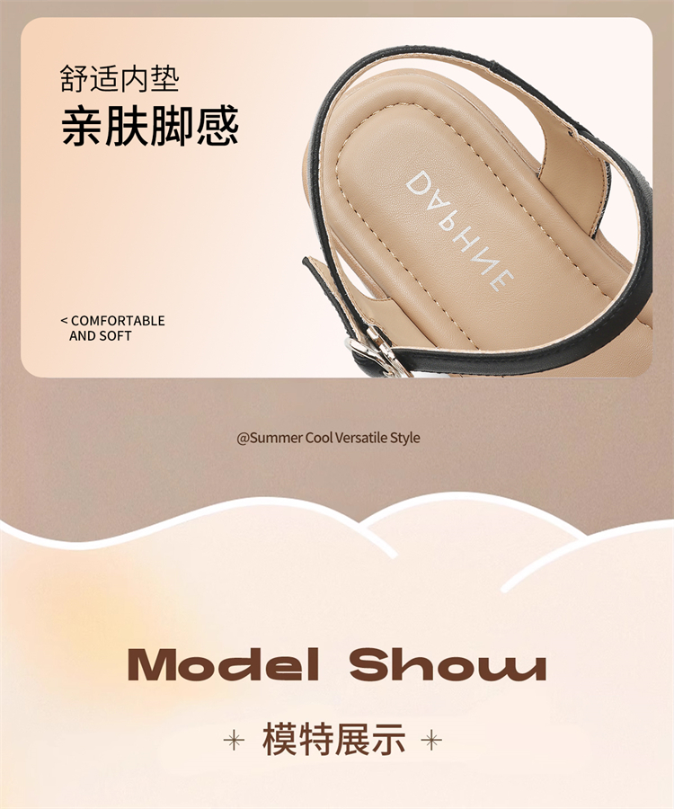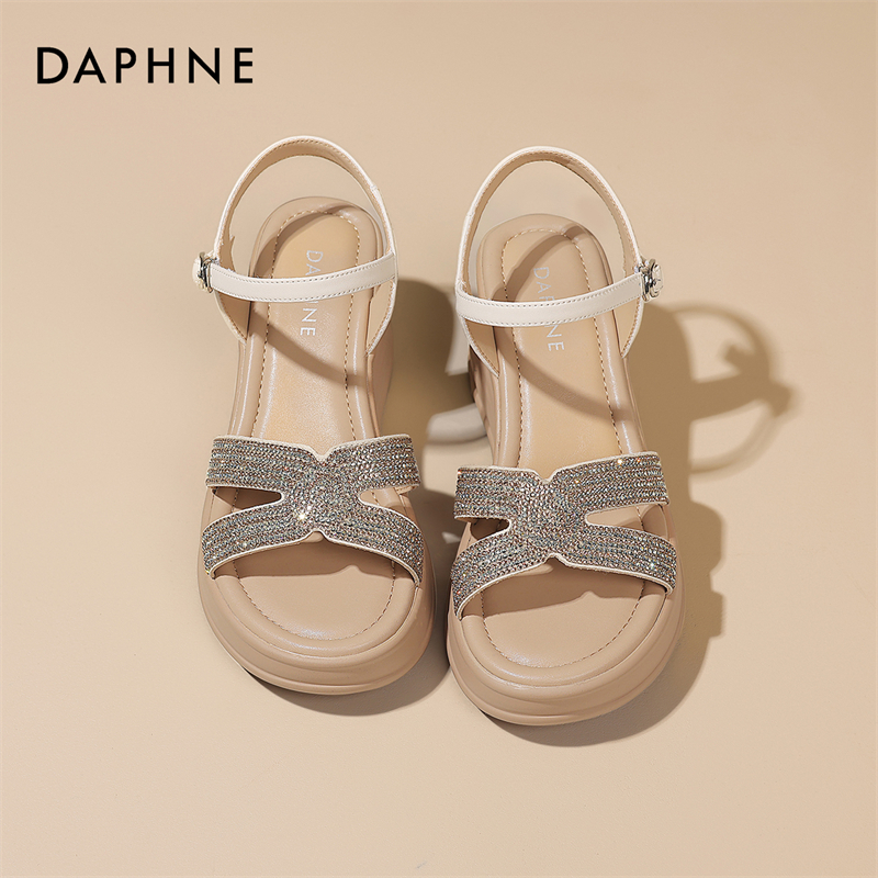 代发达芙妮厚底坡跟凉鞋女2025夏季水钻配裙子增高10CM8CM休闲沙滩鞋