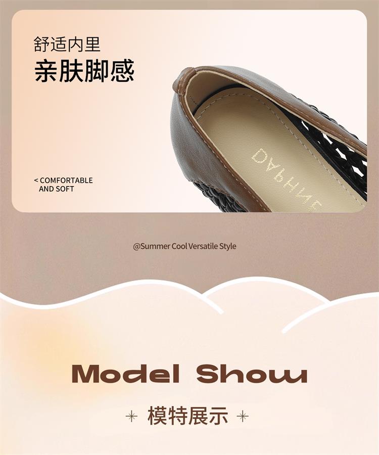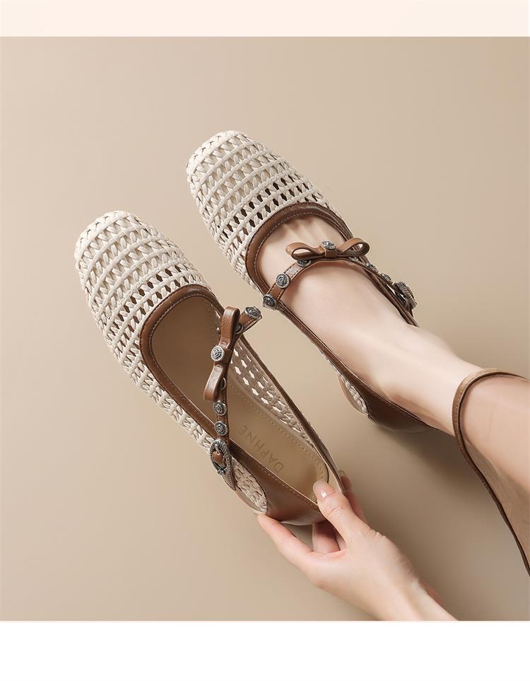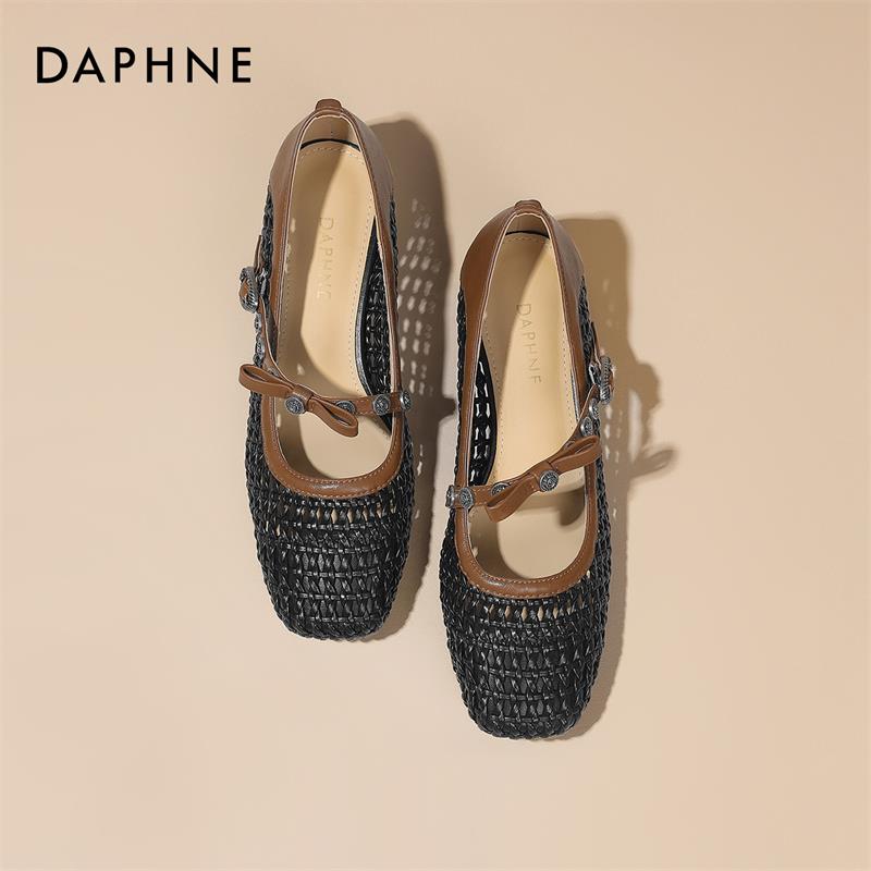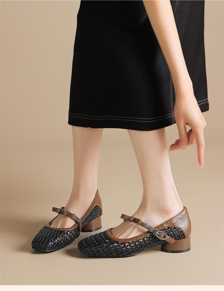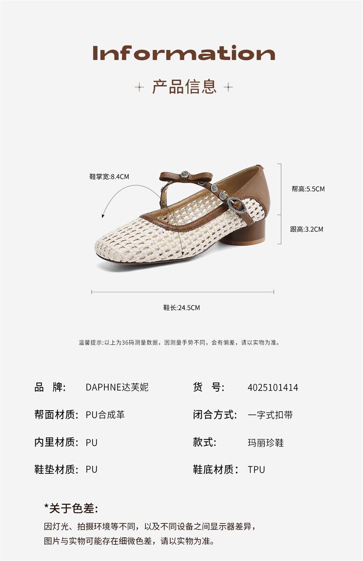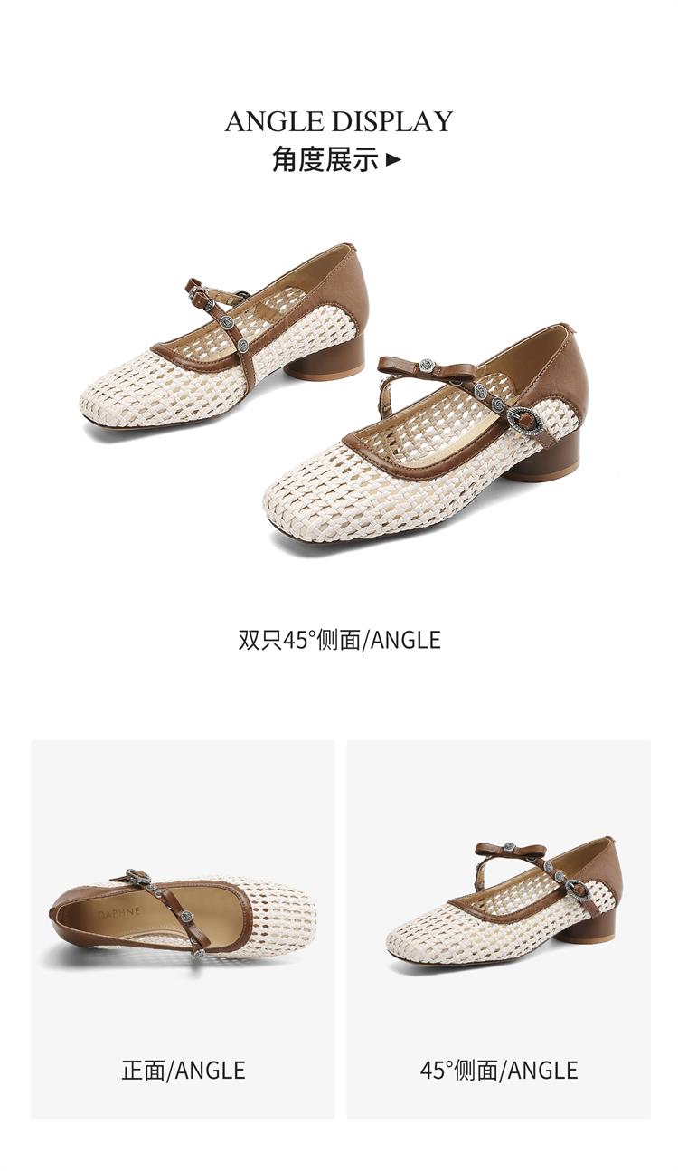代发达芙妮复古方头凉鞋女2025夏季时尚编织镂空透气单鞋粗跟玛丽珍鞋
