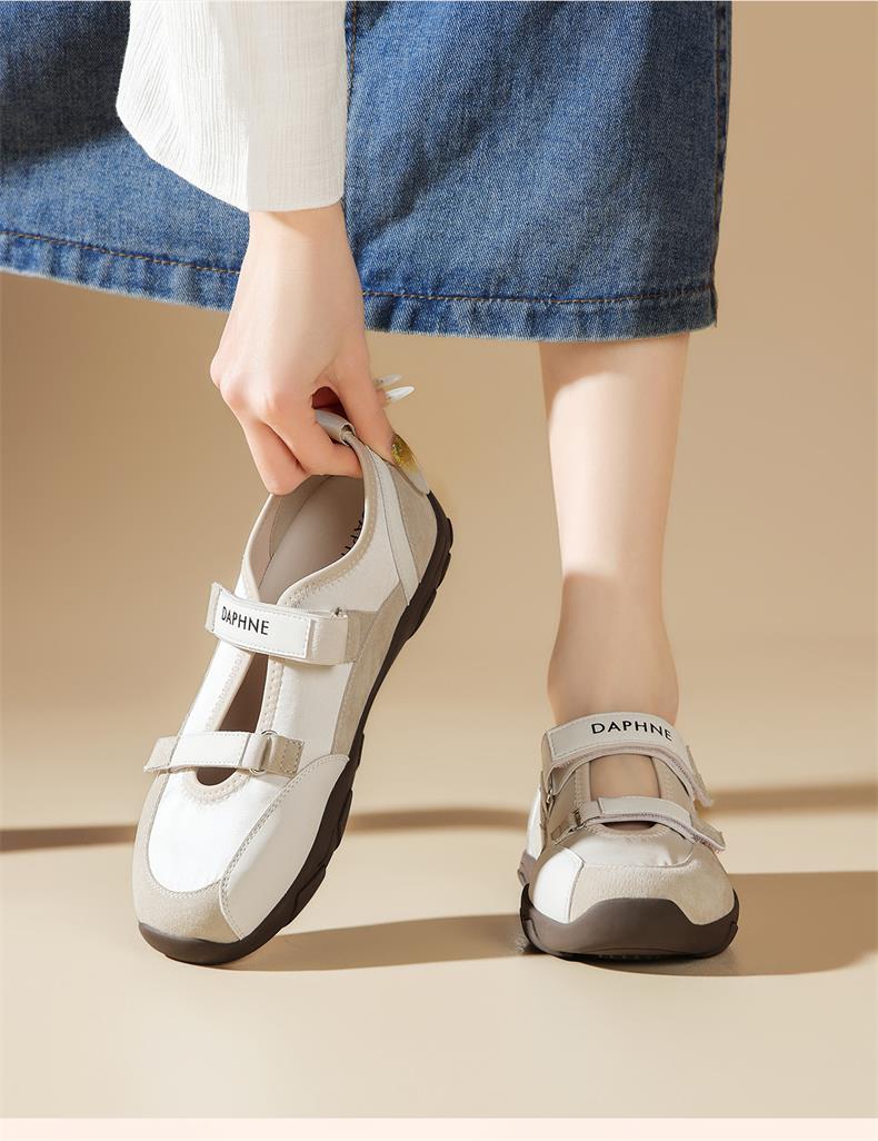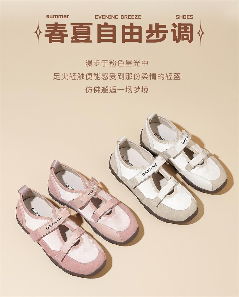 代发达芙妮魔术贴浅口平底单鞋女夏季2025新款平底玛丽珍百搭芭蕾舞鞋