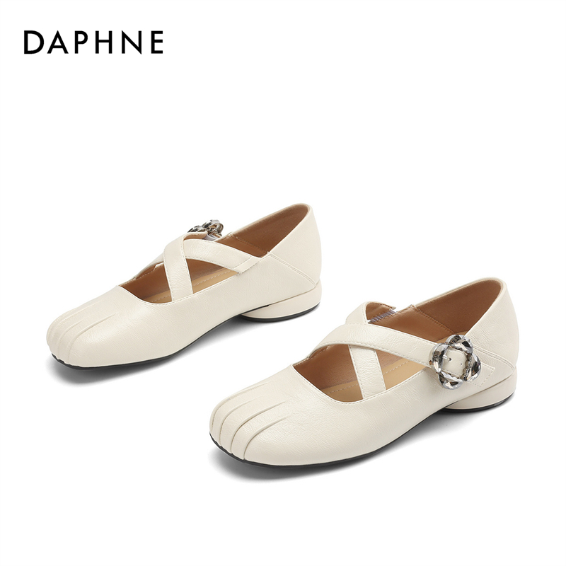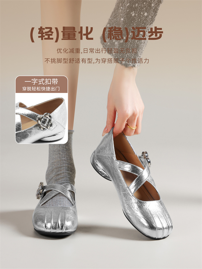 代发达芙妮法式银色玛丽珍平底小单鞋交叉带芭蕾舞鞋女外穿复古奶奶鞋