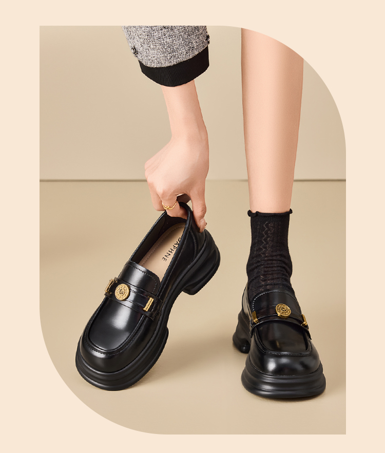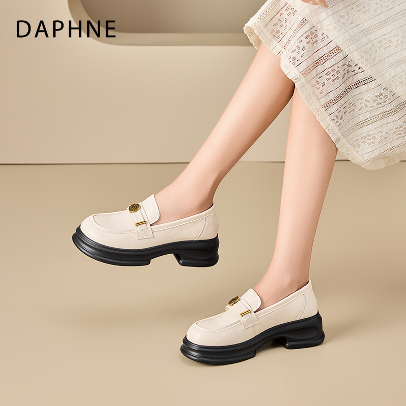 代发达芙妮英伦风厚底乐福鞋女2025夏季新款单鞋学院风高级感jk小皮鞋