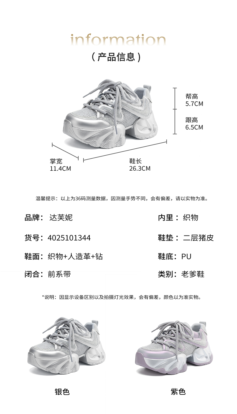 代发达芙妮厚底老爹鞋女2025新款春夏季爆款老爹鞋厚底增高时尚休闲鞋