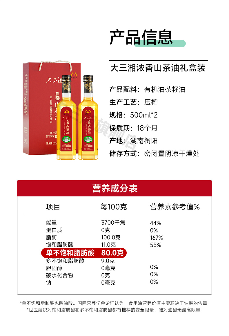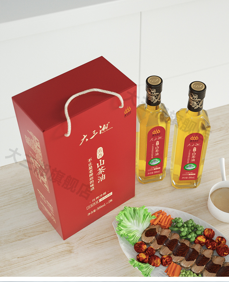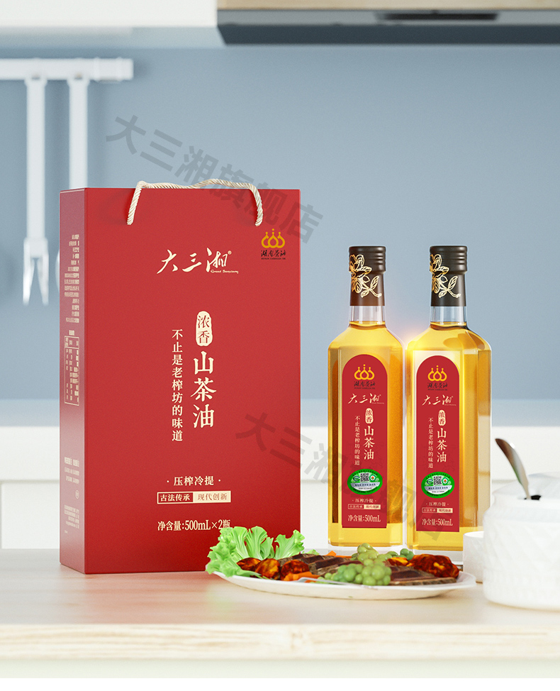 源头大三湘浓香有机山茶油500ml双支礼盒(玻璃瓶)