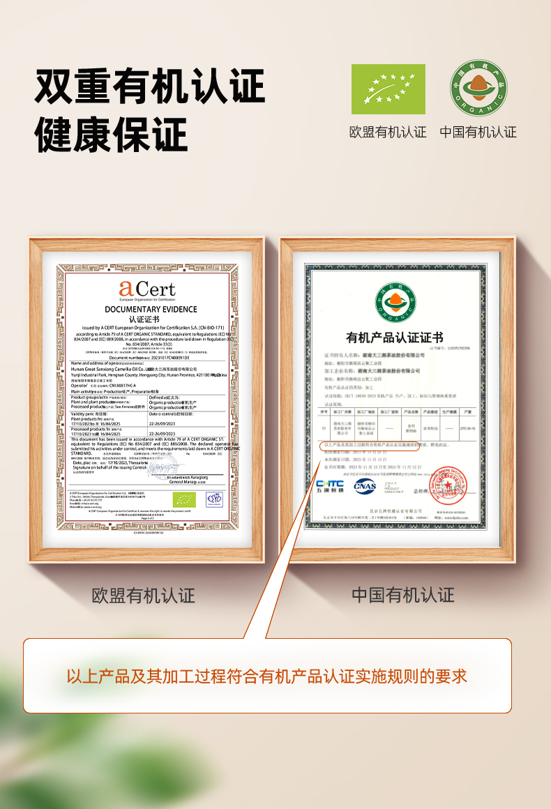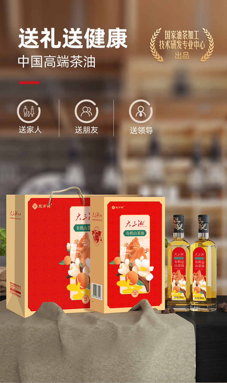 源头大三湘有机山茶油500ML*2瓶双支礼盒