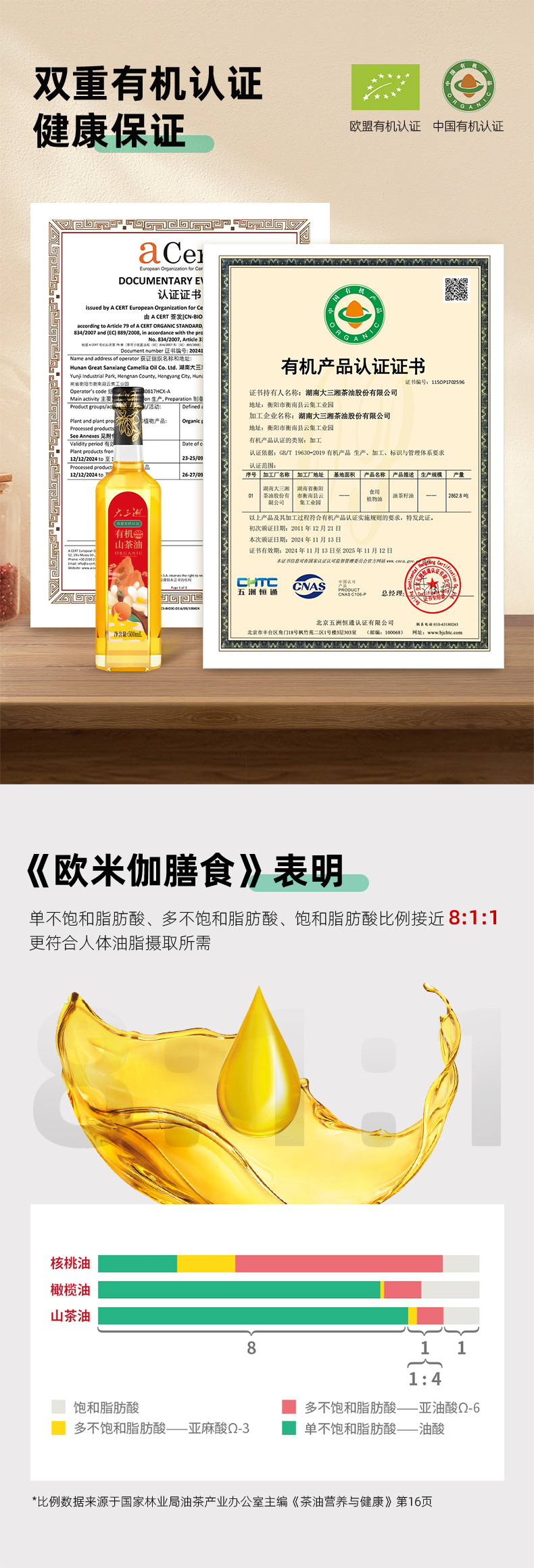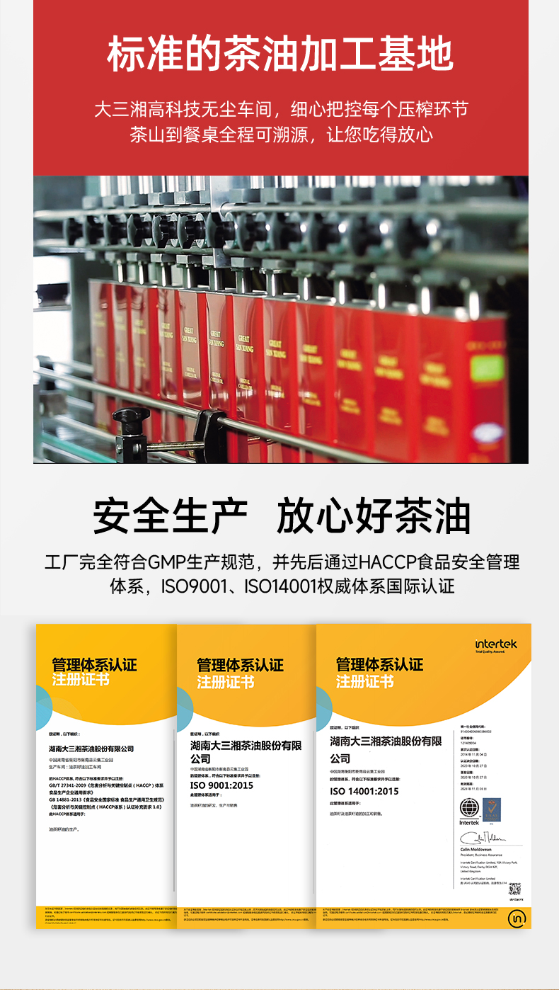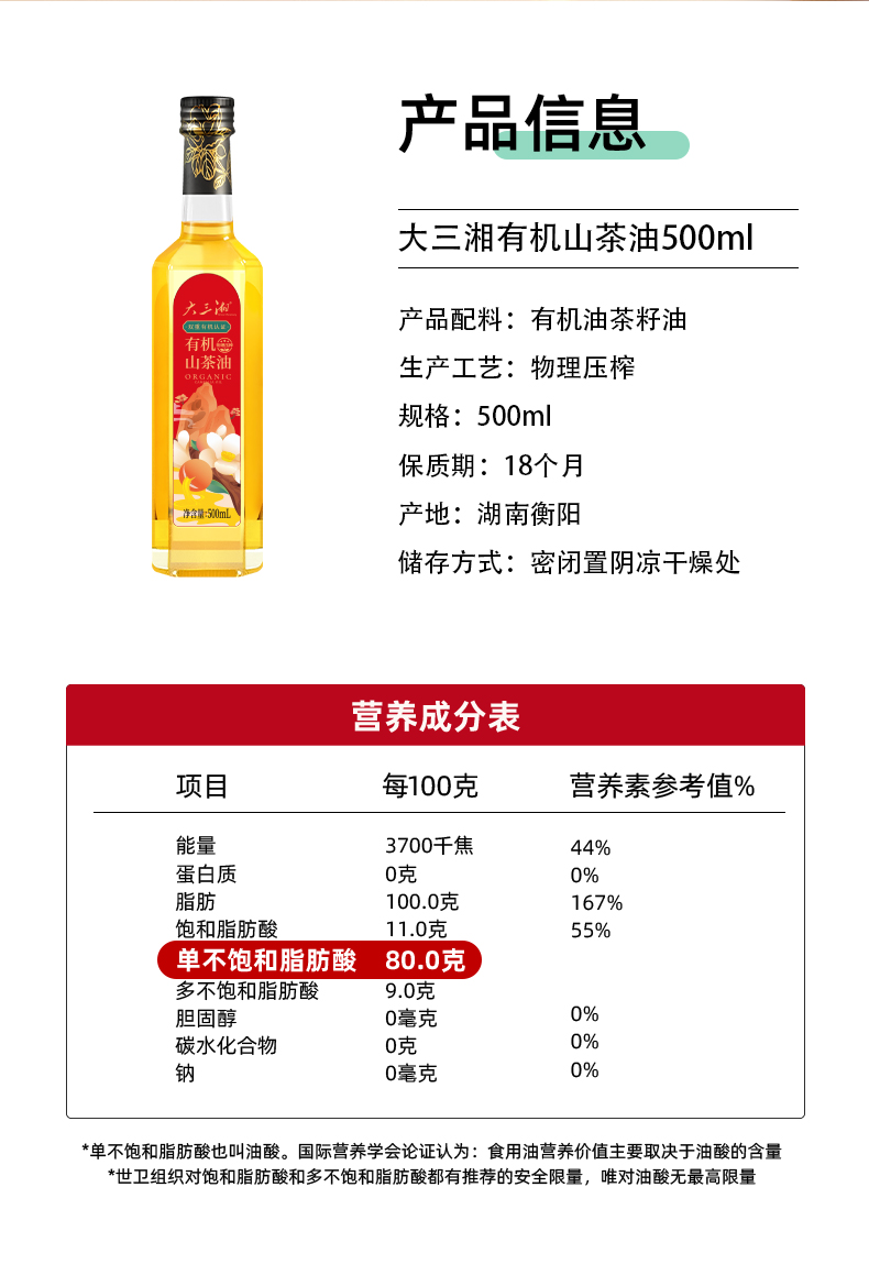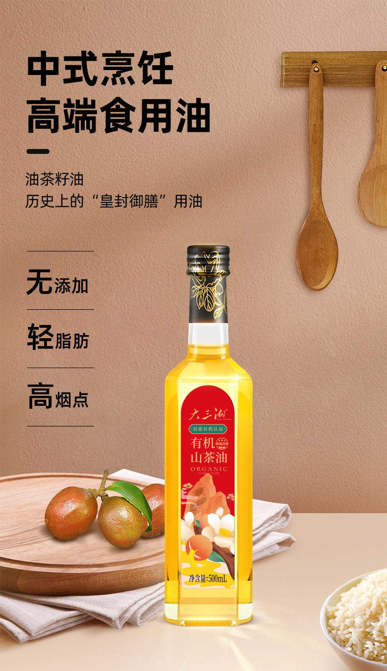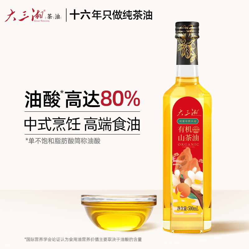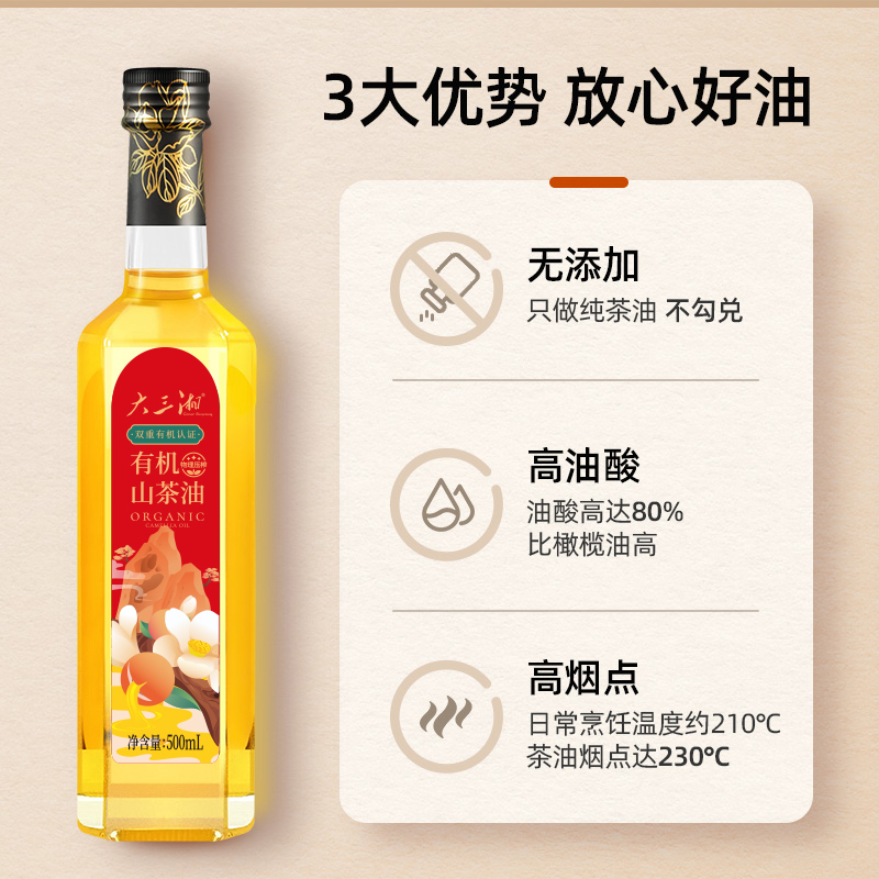 源头大三湘有机山茶油500ML玻璃瓶