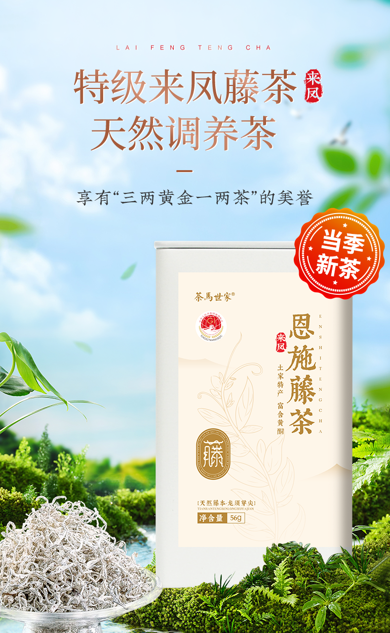 代发茶马世家富硒特级野生龙须藤茶罐装56g