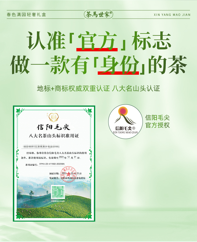 代发茶马世家春色满园信阳毛尖礼盒装200g