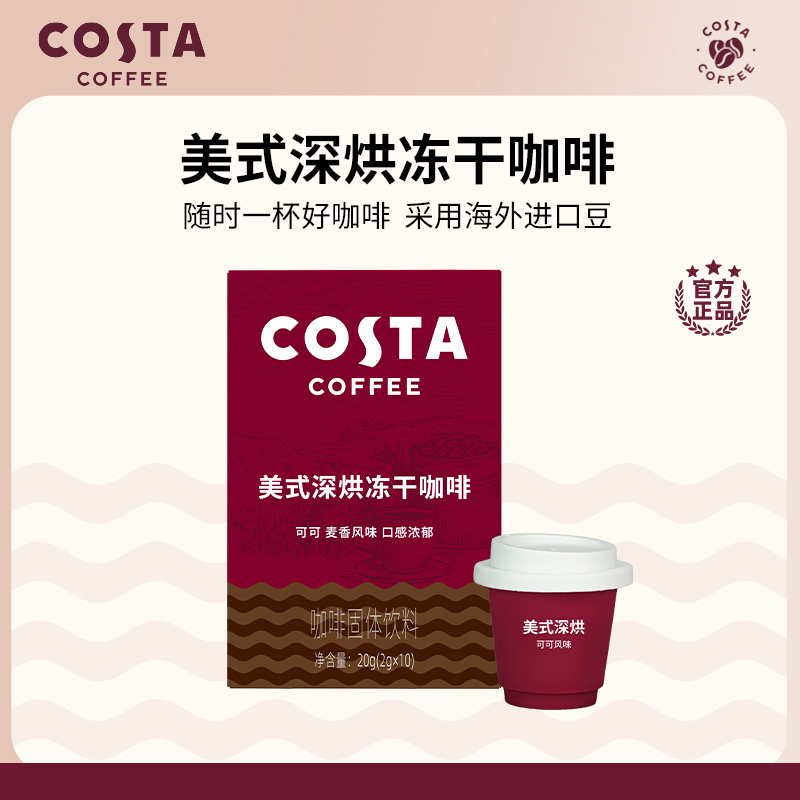 代发COSTA美式深烘冻干咖啡固体饮料冷萃工艺可可麦香风味口感浓郁2g*10颗