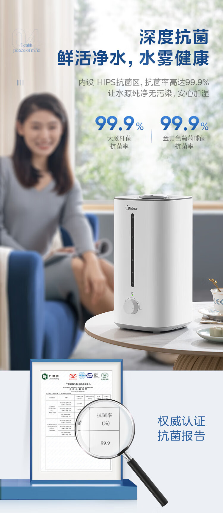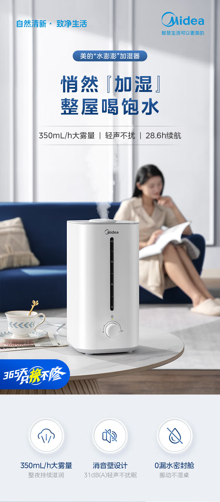 代发美的(Midea)加湿器 350mL/h加湿量 4L水箱 上加水 SC-3G40S