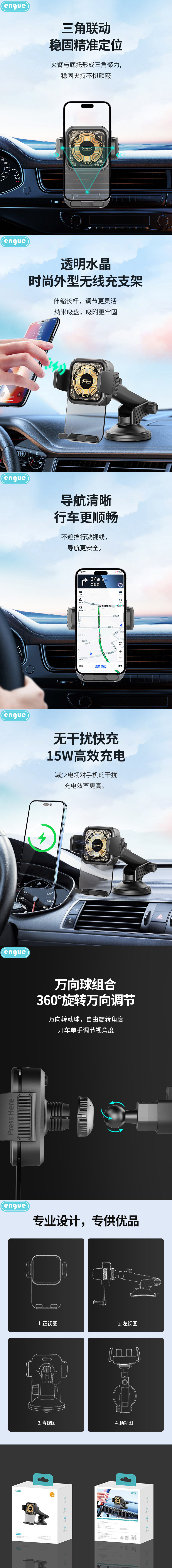 代发engue恩谷车载水晶无线充手机支架EG-C05