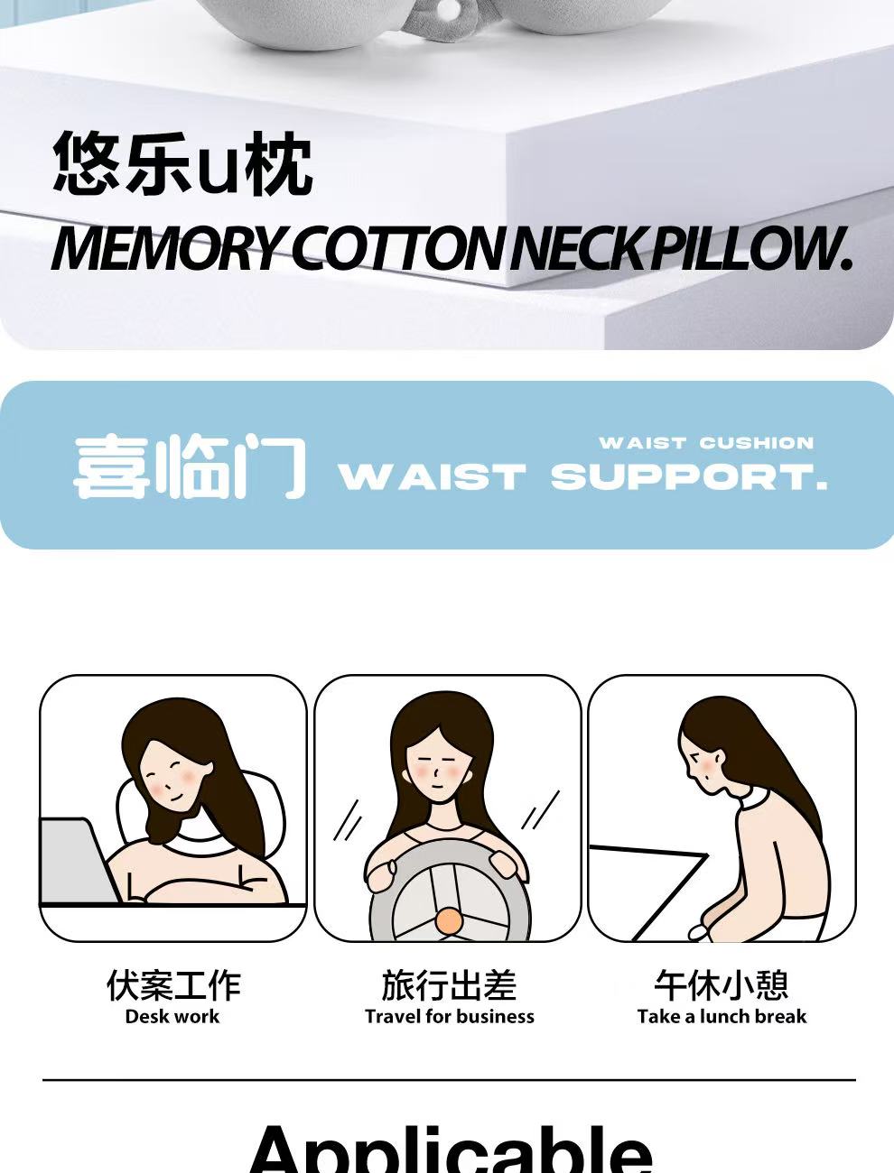源头喜临门 U型颈椎经典记忆棉成人枕头颈椎枕 记忆棉护颈枕(灰色)