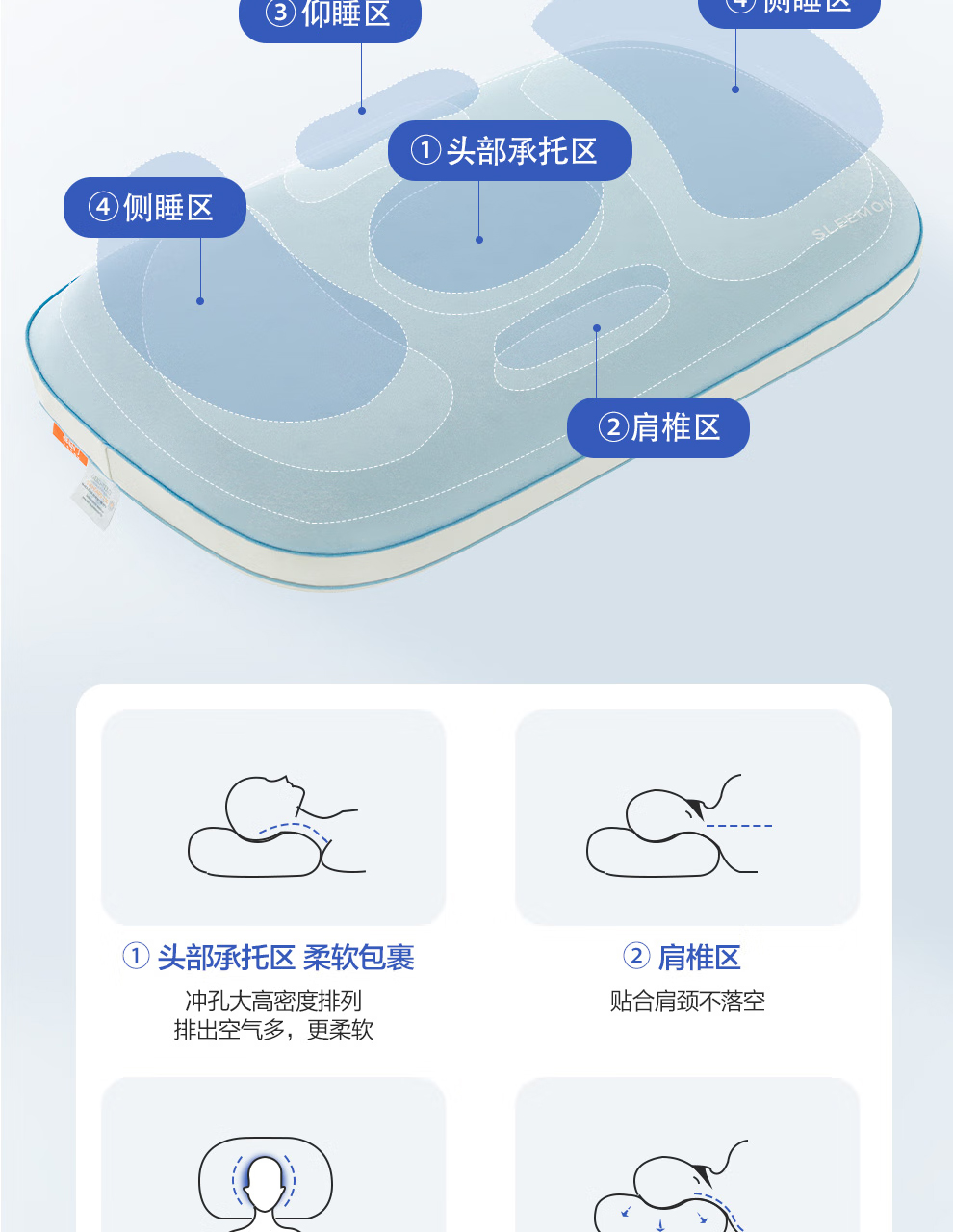源头喜临门A类双面枕透气慢回弹宿舍枕头睡眠成人家用酒店枕芯 漾*大蓝鲸深睡枕
