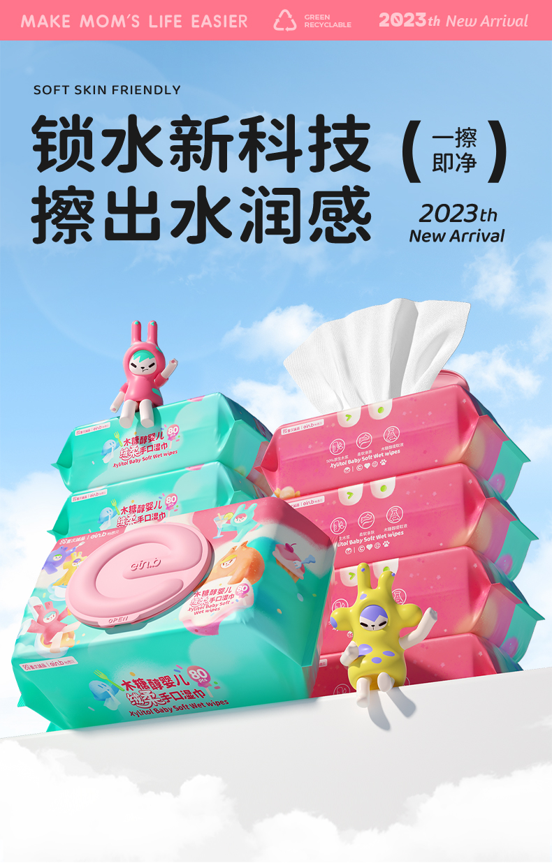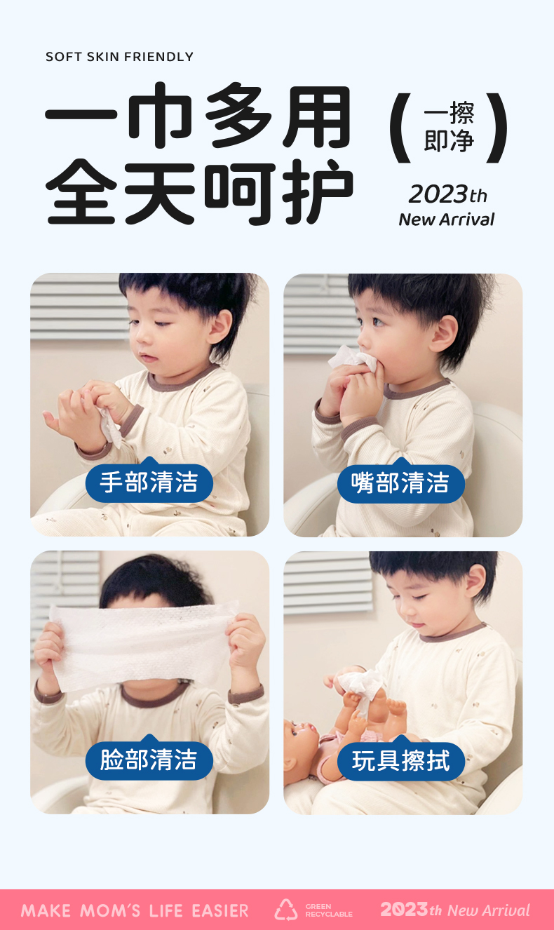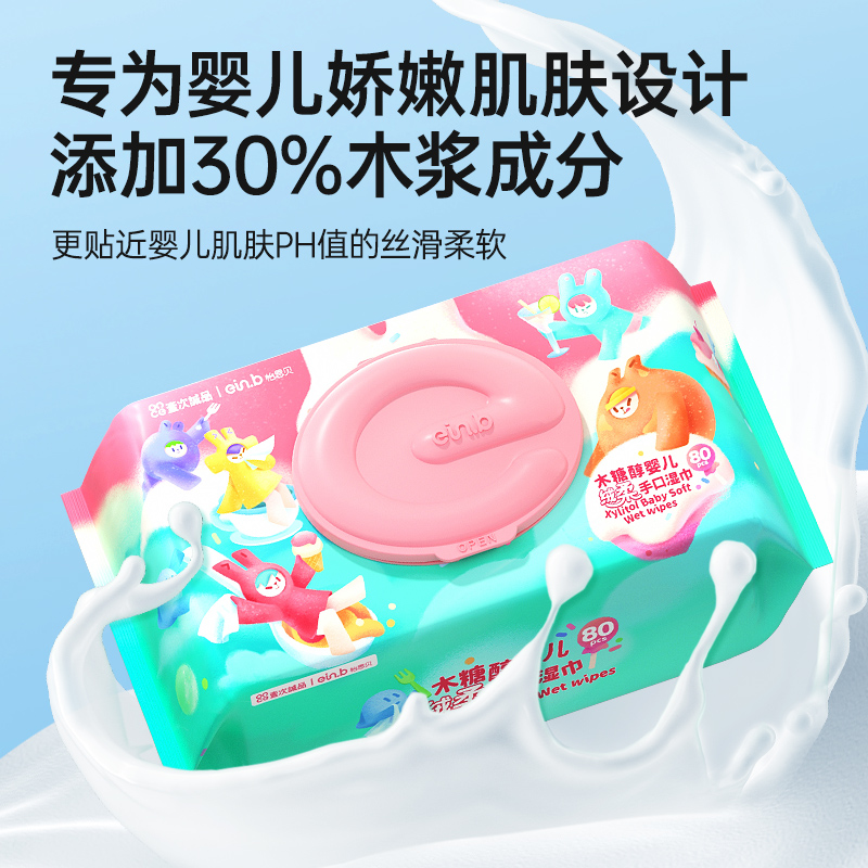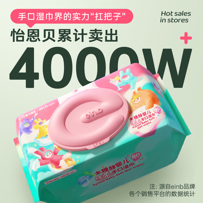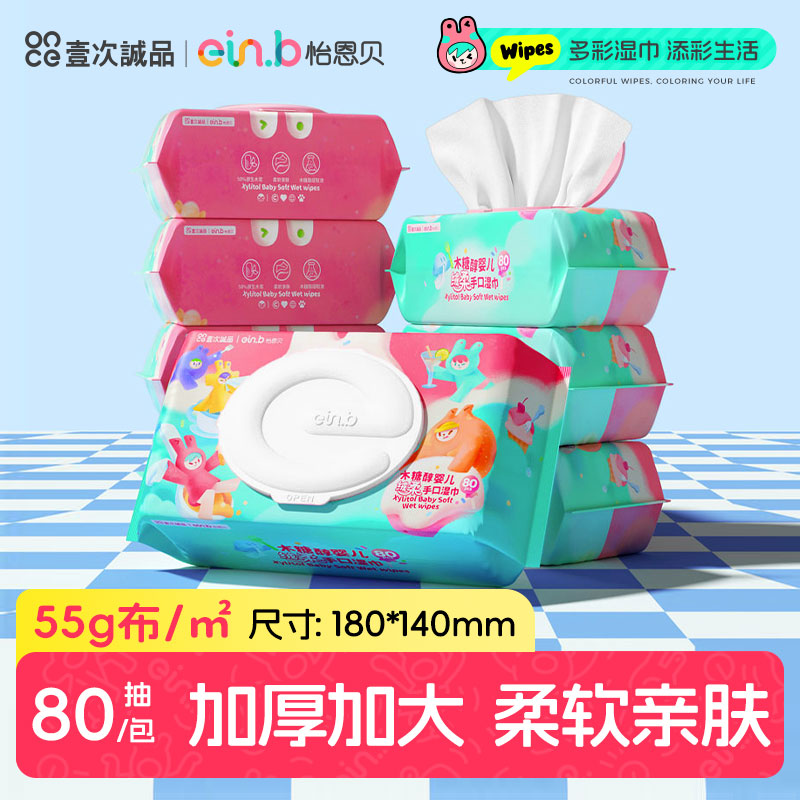 代发怡恩贝多彩婴儿湿巾纸家庭装婴幼儿童宝宝手口清洁专用湿纸巾80抽