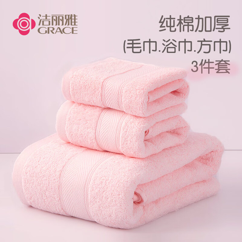 代发洁丽雅(Grace)抗菌毛巾套装纯棉亲肤素色三件套组合 浴巾*1毛巾*1方巾*1 红色