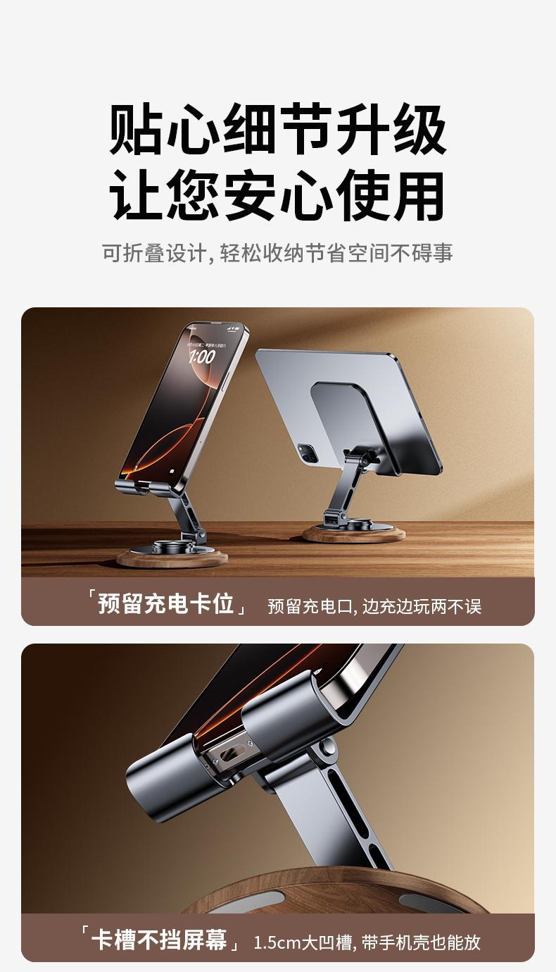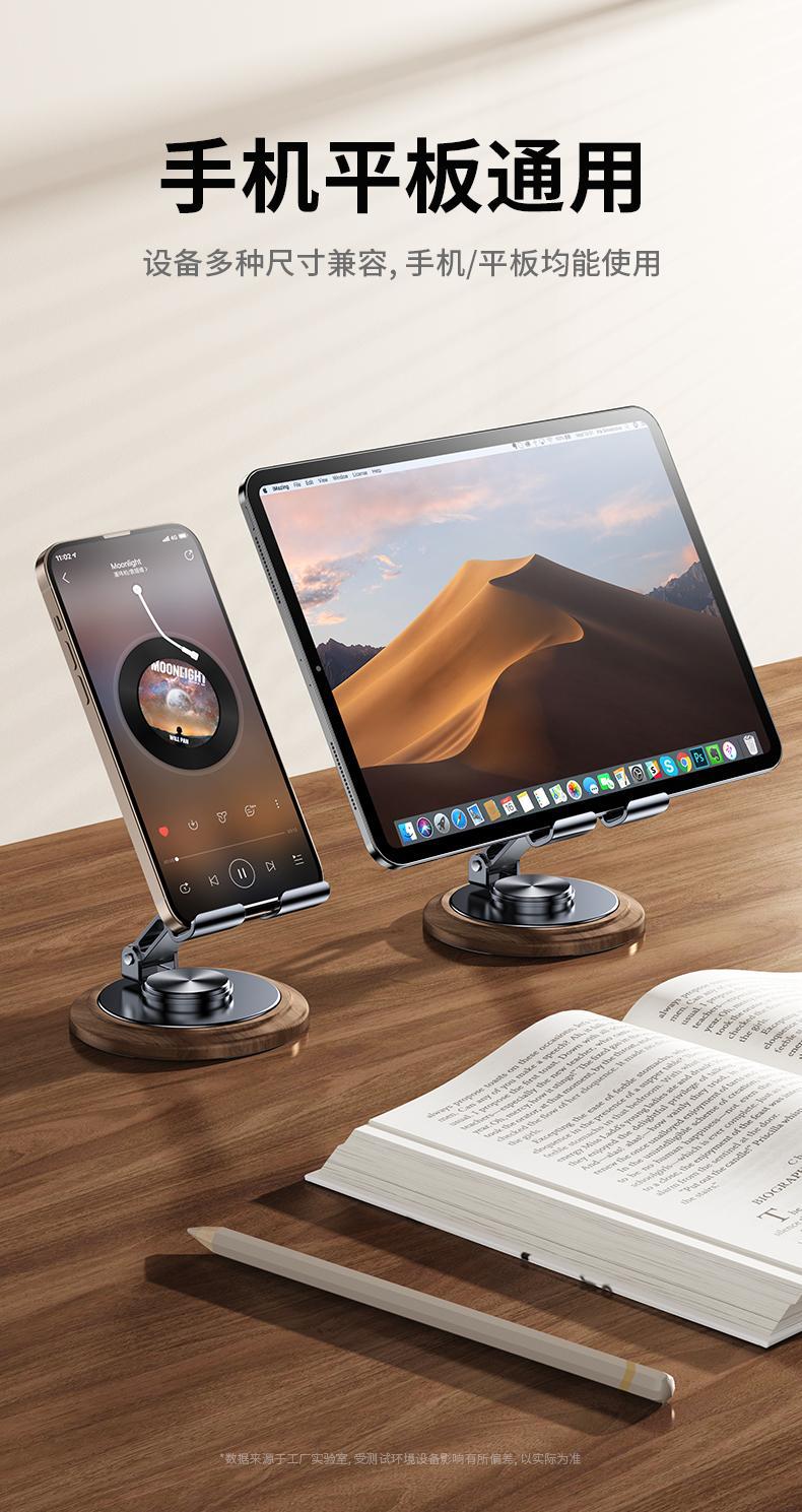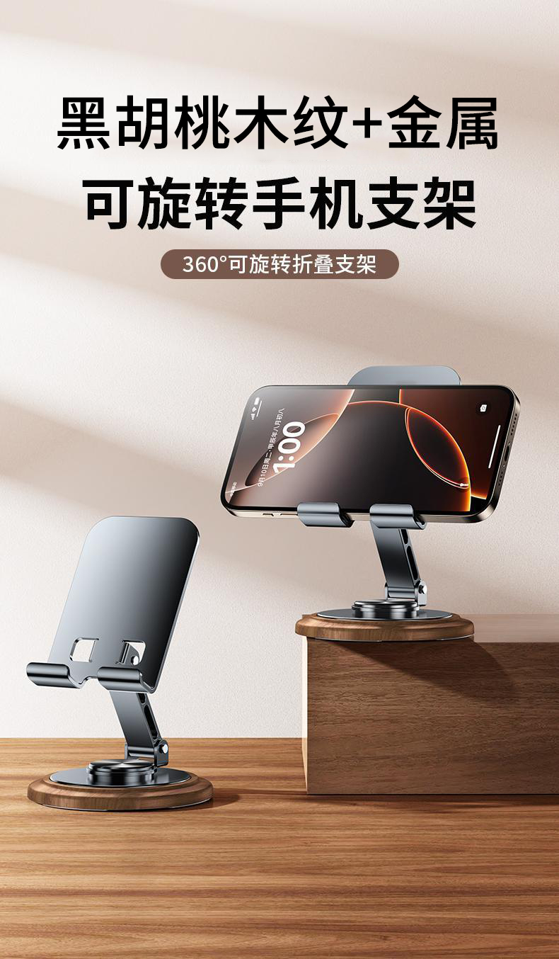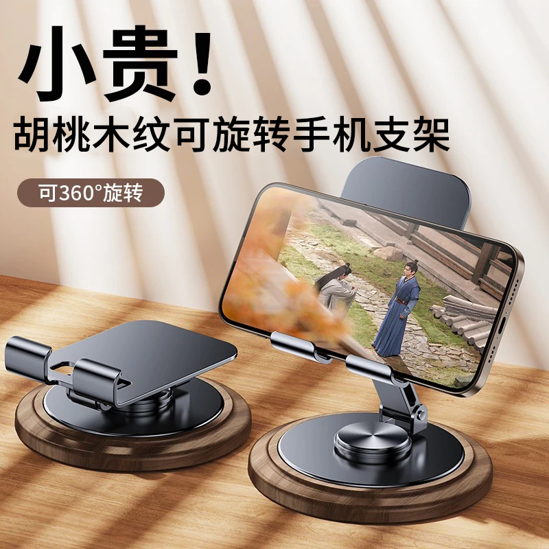 源头MUZILI胡桃木纹手机平板桌面旋转支架HD1
