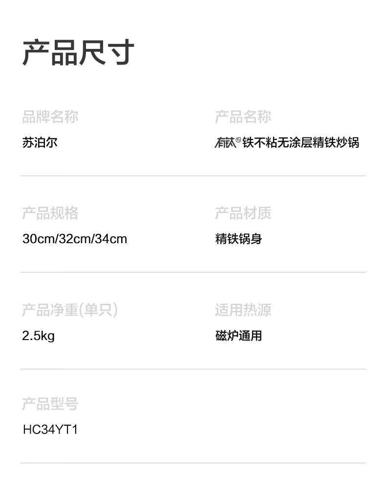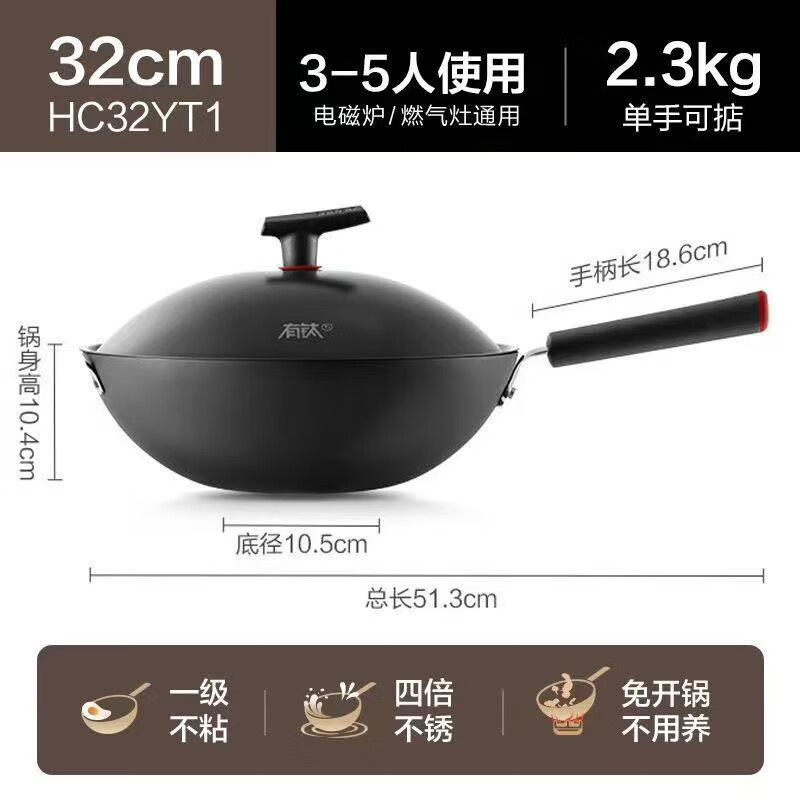 代发苏泊尔32cm有钛铁不粘无涂层精铁炒锅HC32YT1