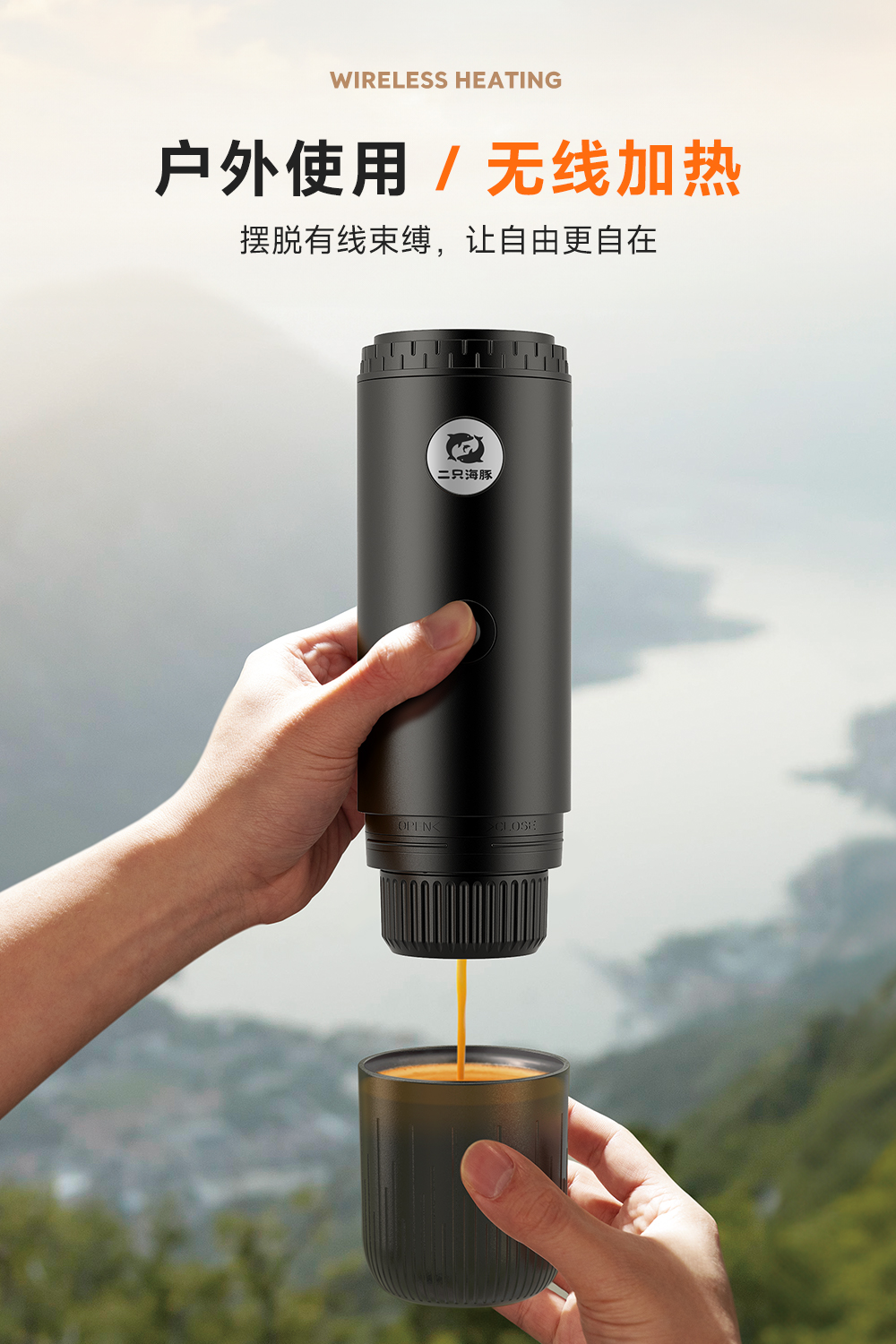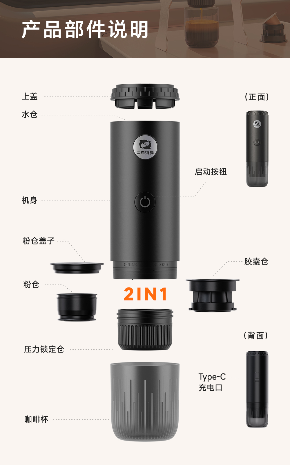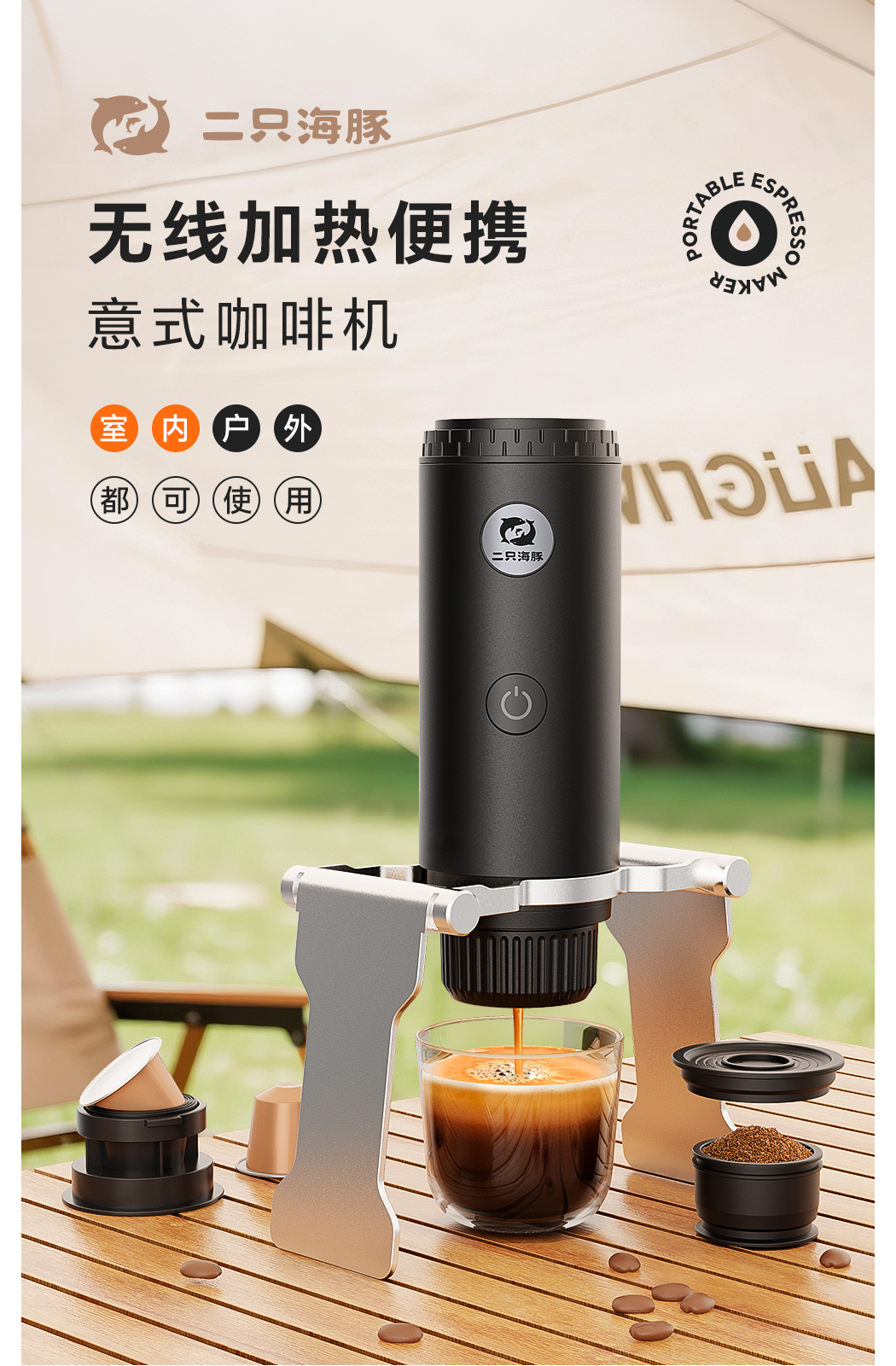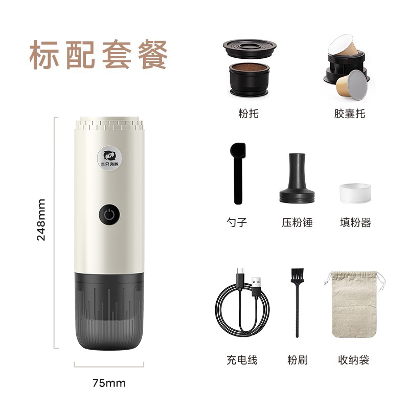 源头2只海豚ME2604意式便携式咖啡机小型家用办公室胶囊加热萃取节日送礼物