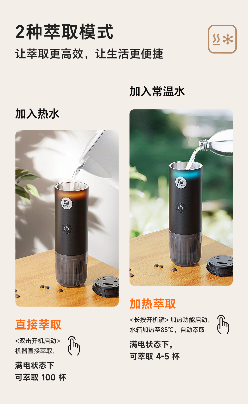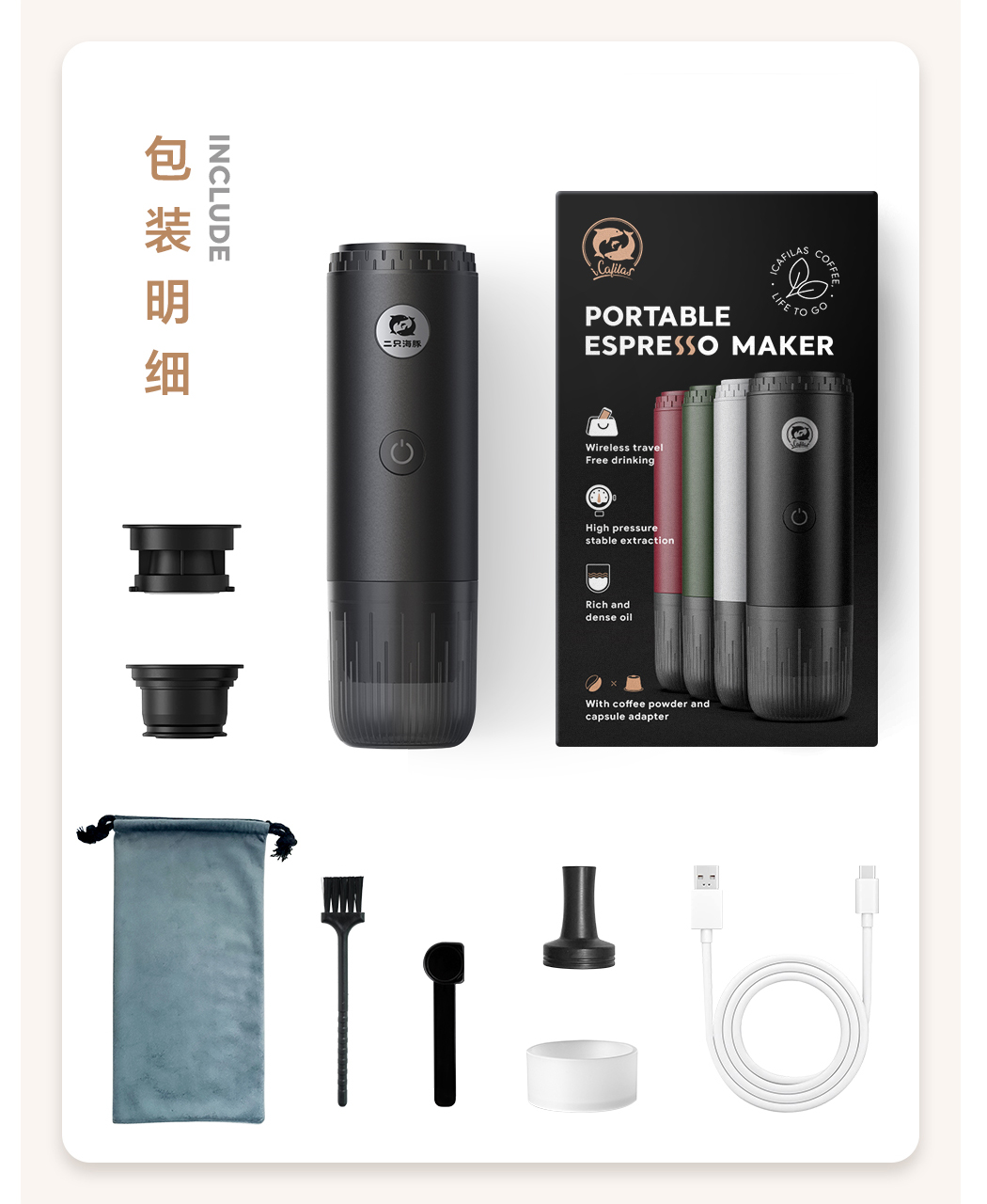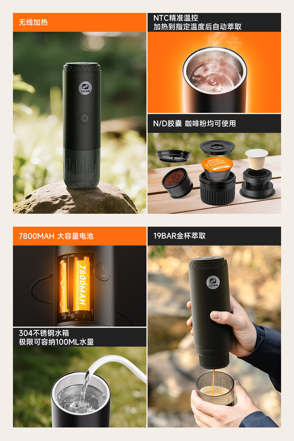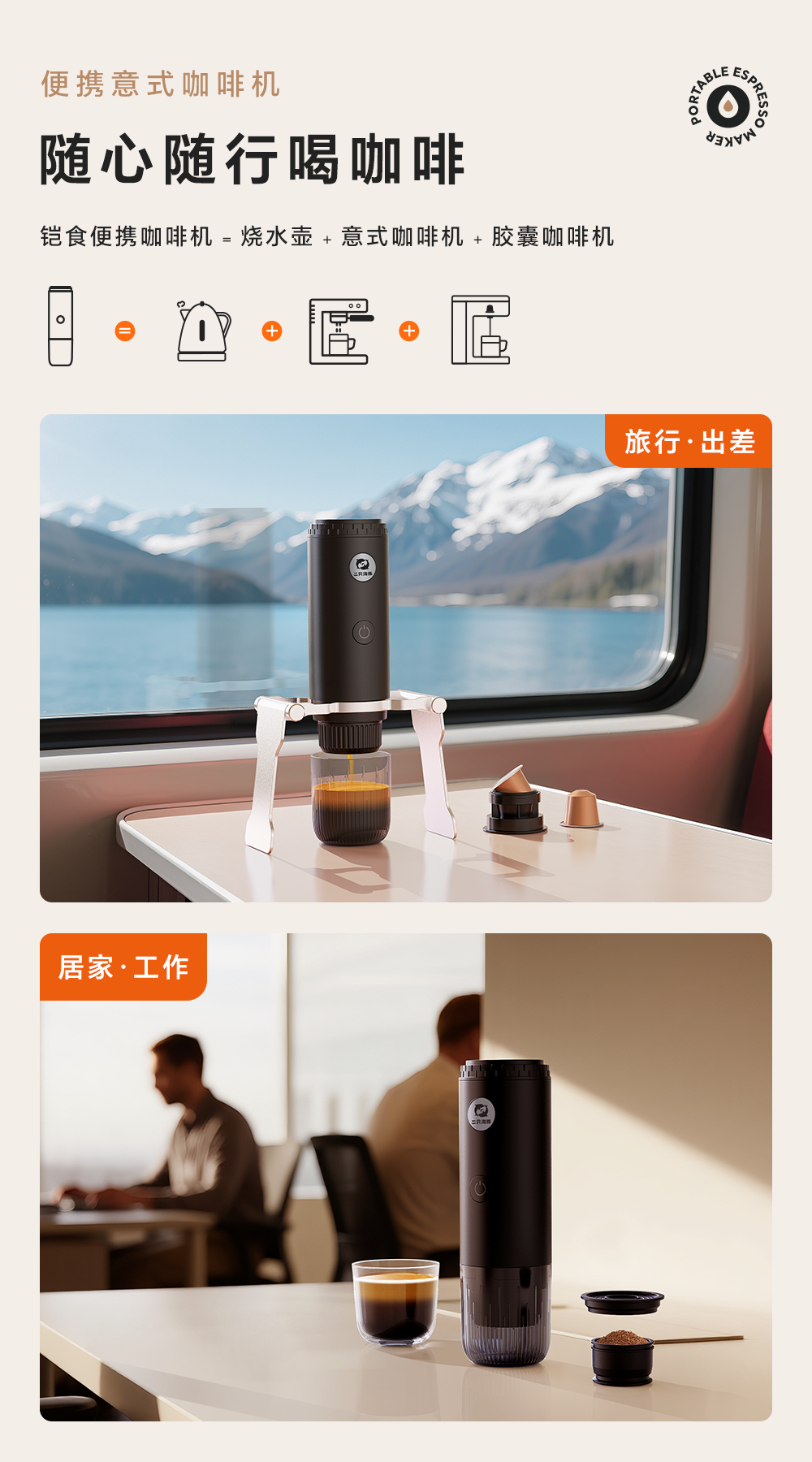 源头2只海豚ME2604意式便携式咖啡机小型家用办公室胶囊加热萃取节日送礼物