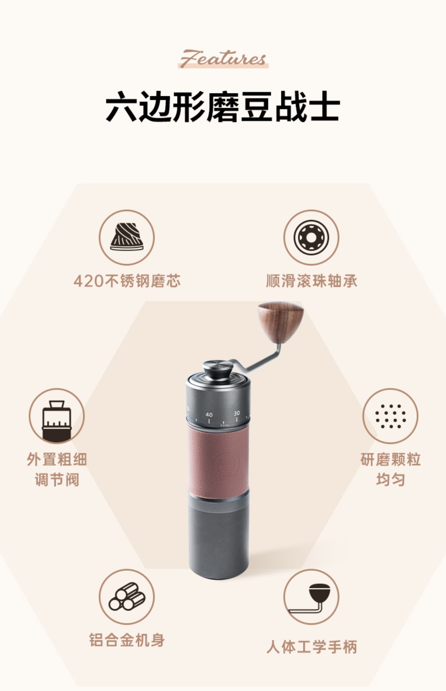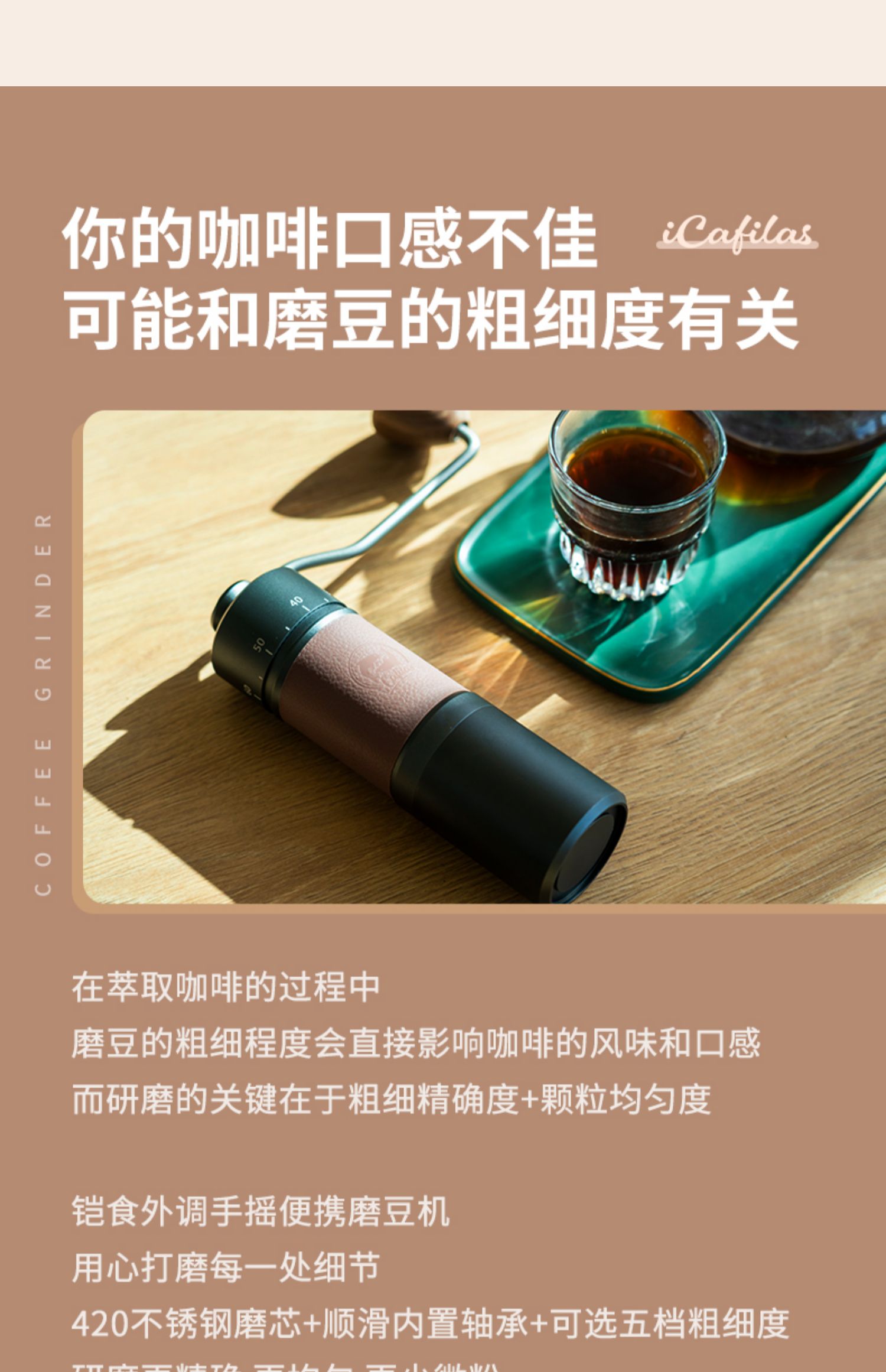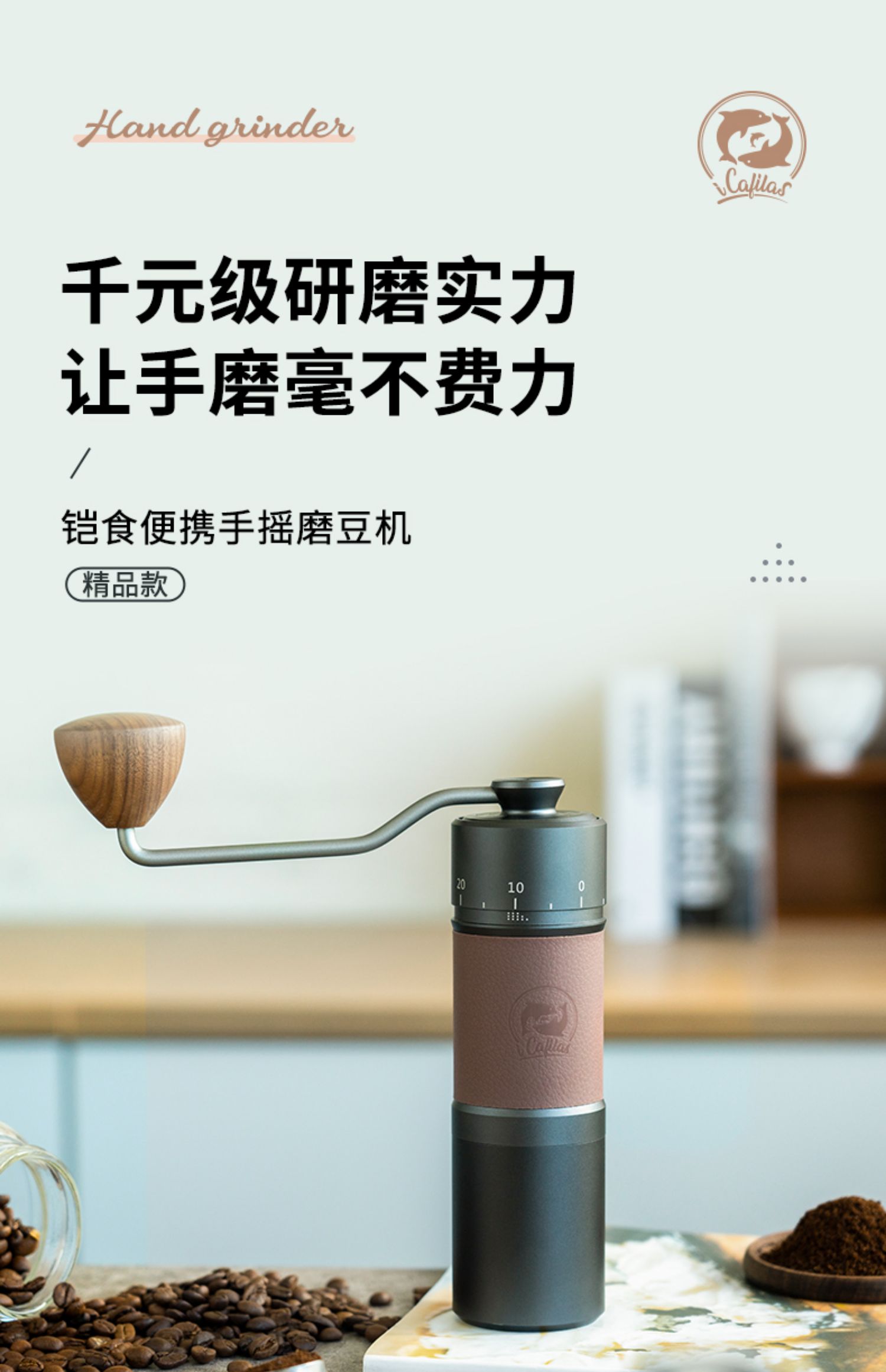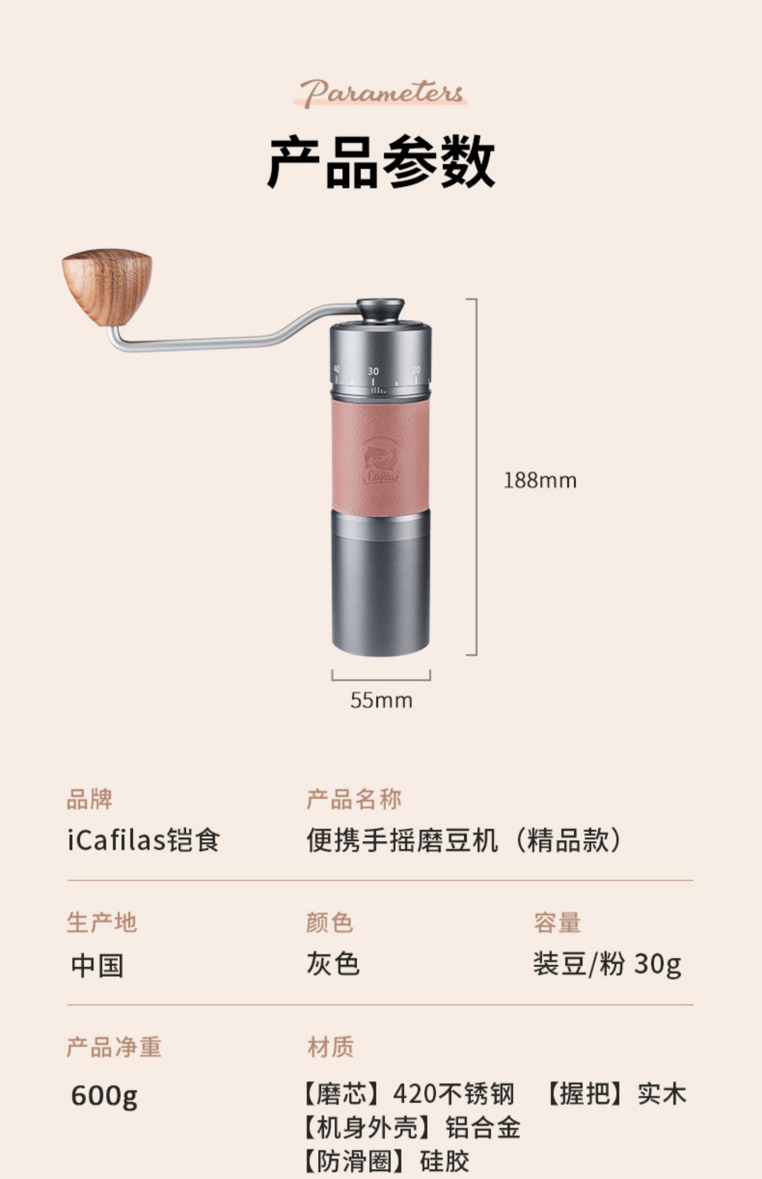 源头2214铠食 手摇磨豆机家用便携手冲意式咖啡手动研磨粉器具小型CNC磨芯