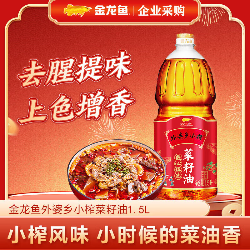 代发金龙鱼食用油 非转基因压榨一级 外婆乡小榨匠心臻选菜籽油1.5L