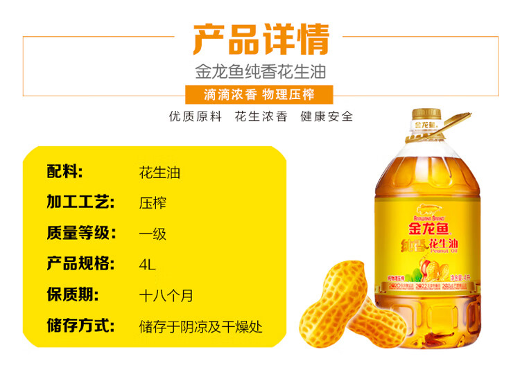 当前位置:首页 > 食品饮料 > 食用油 > 花生油 > 金龙鱼纯香花生油4L