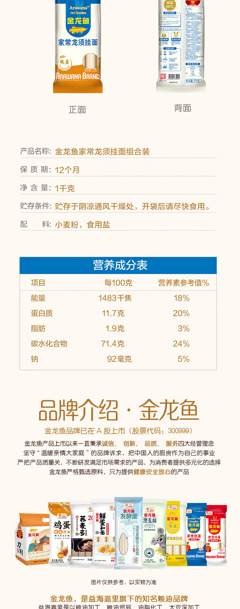 代发金龙鱼挂面 家常系列龙须麦芯挂面1kg