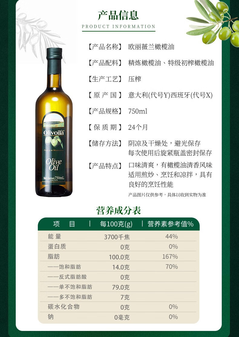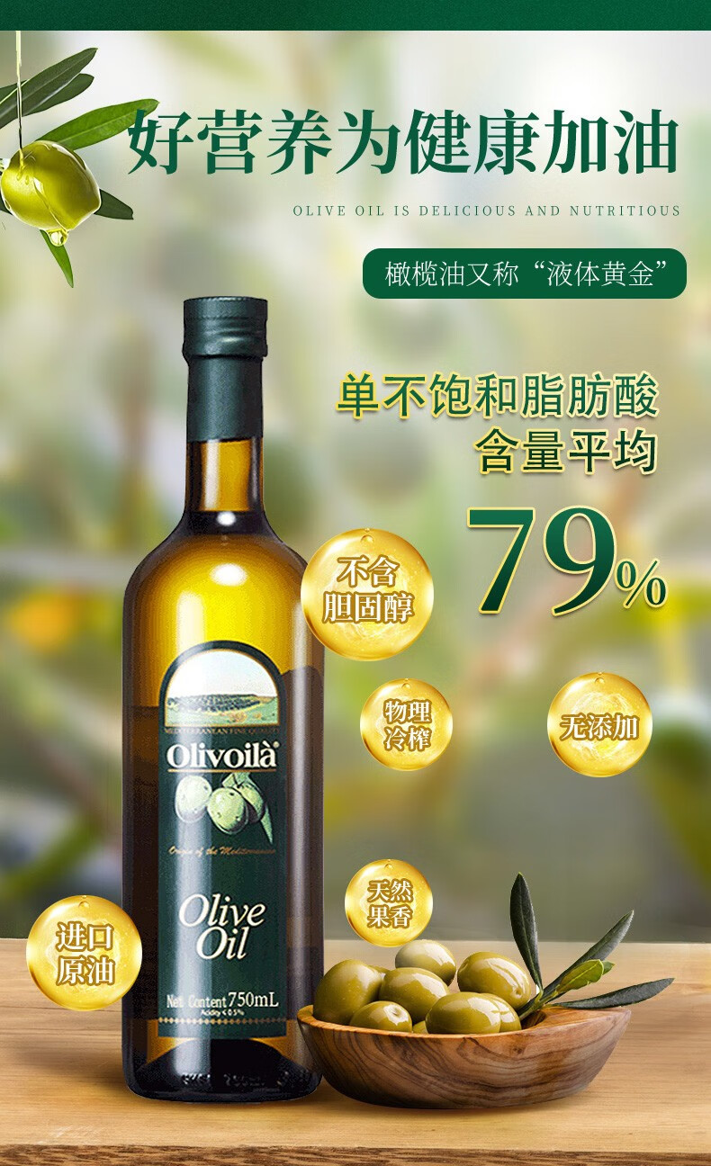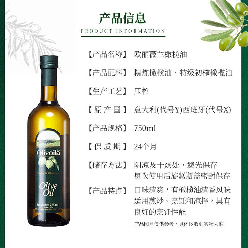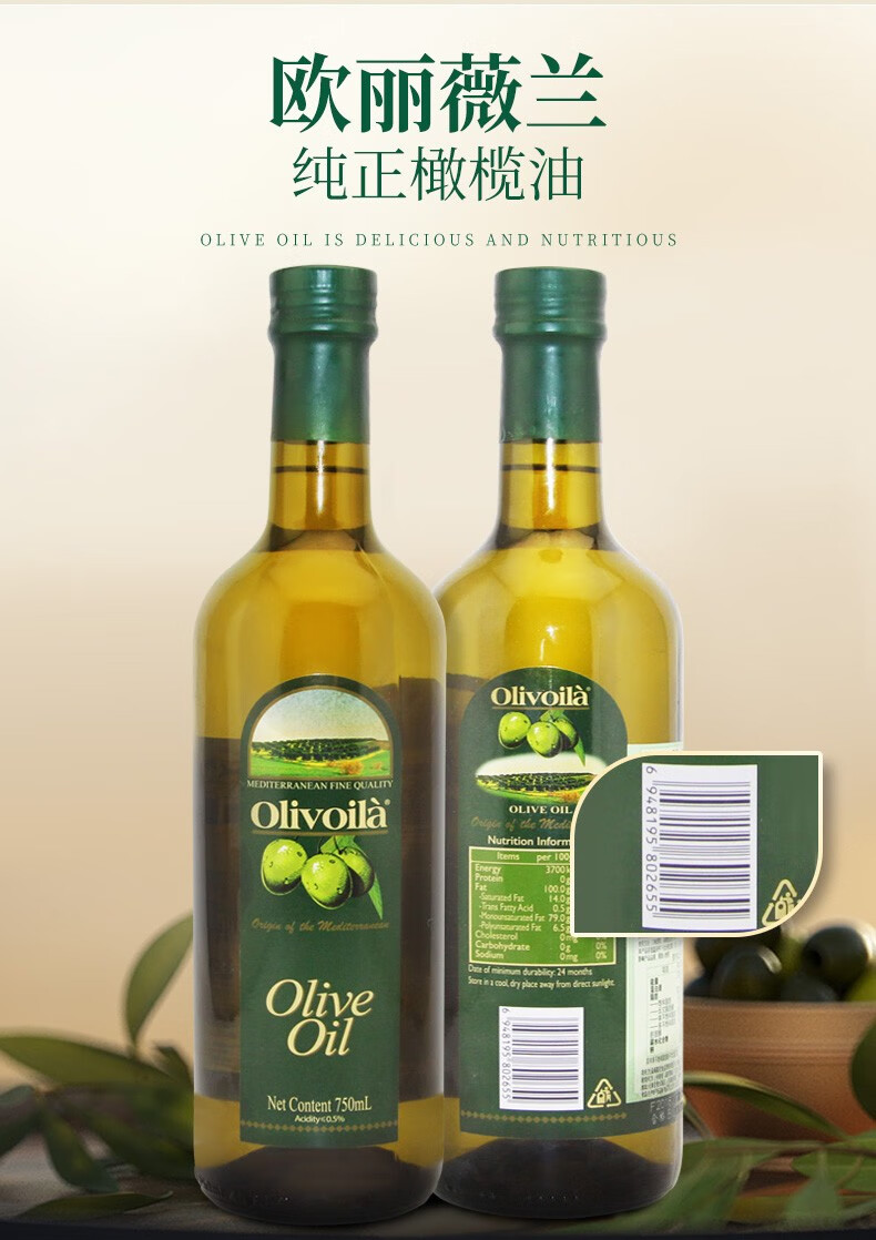 代发欧丽薇兰(Olivoila)纯正橄榄油简装礼盒750ml*2瓶