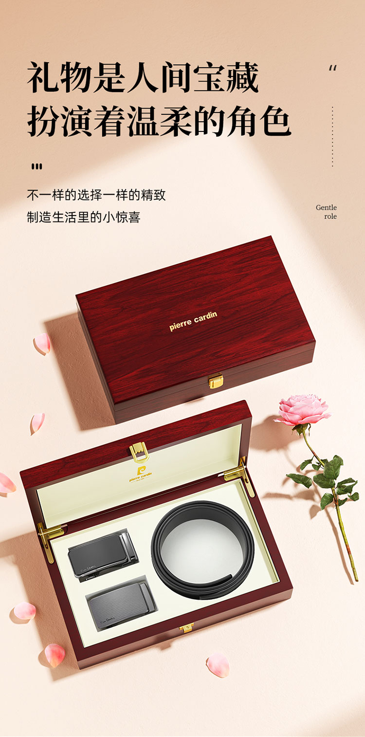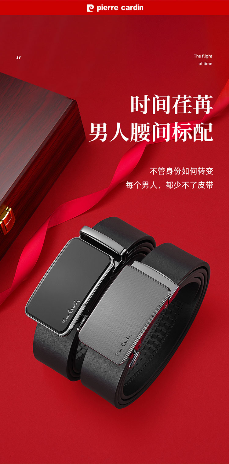 代发皮尔卡丹黑色双扣头皮带礼盒二件套W52066951-5A