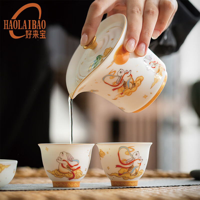 代发好来宝望月吟·素烧羊脂玉瓷茶具旅行套装HLB-CJSS01高端随手礼首选